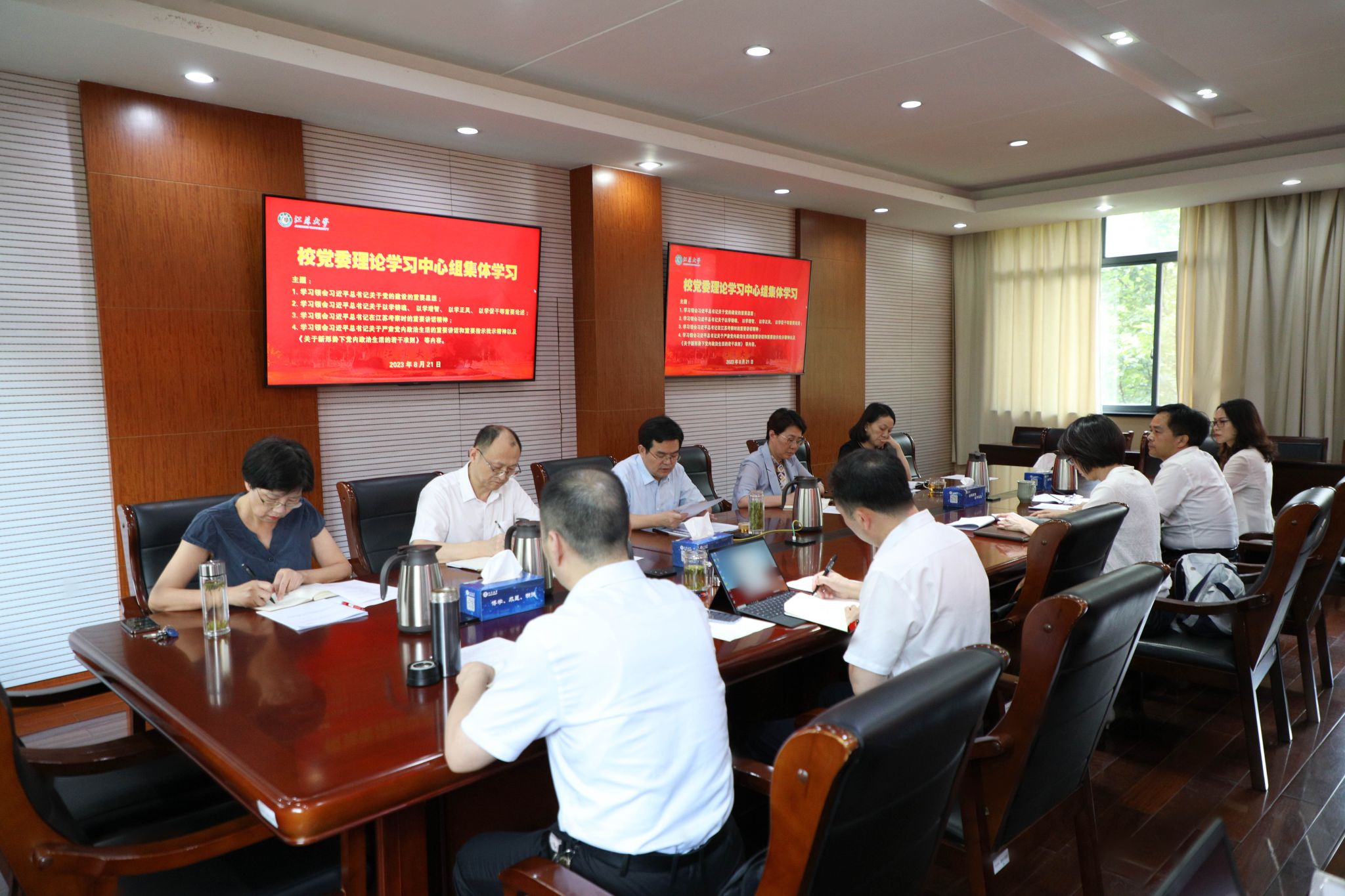 按照党中央关于在学习贯彻习近平新时代中国特色社会主义思想主题教育中开好专题民主生活会的部署要求,8月21日,学校在行政一号楼201会议室召开主题教育专题民主生活会前党委理论学习中心组集体学习。在校校党委理论学习中心组成员参加学习,集体学习由校党委书记李洪波主持。