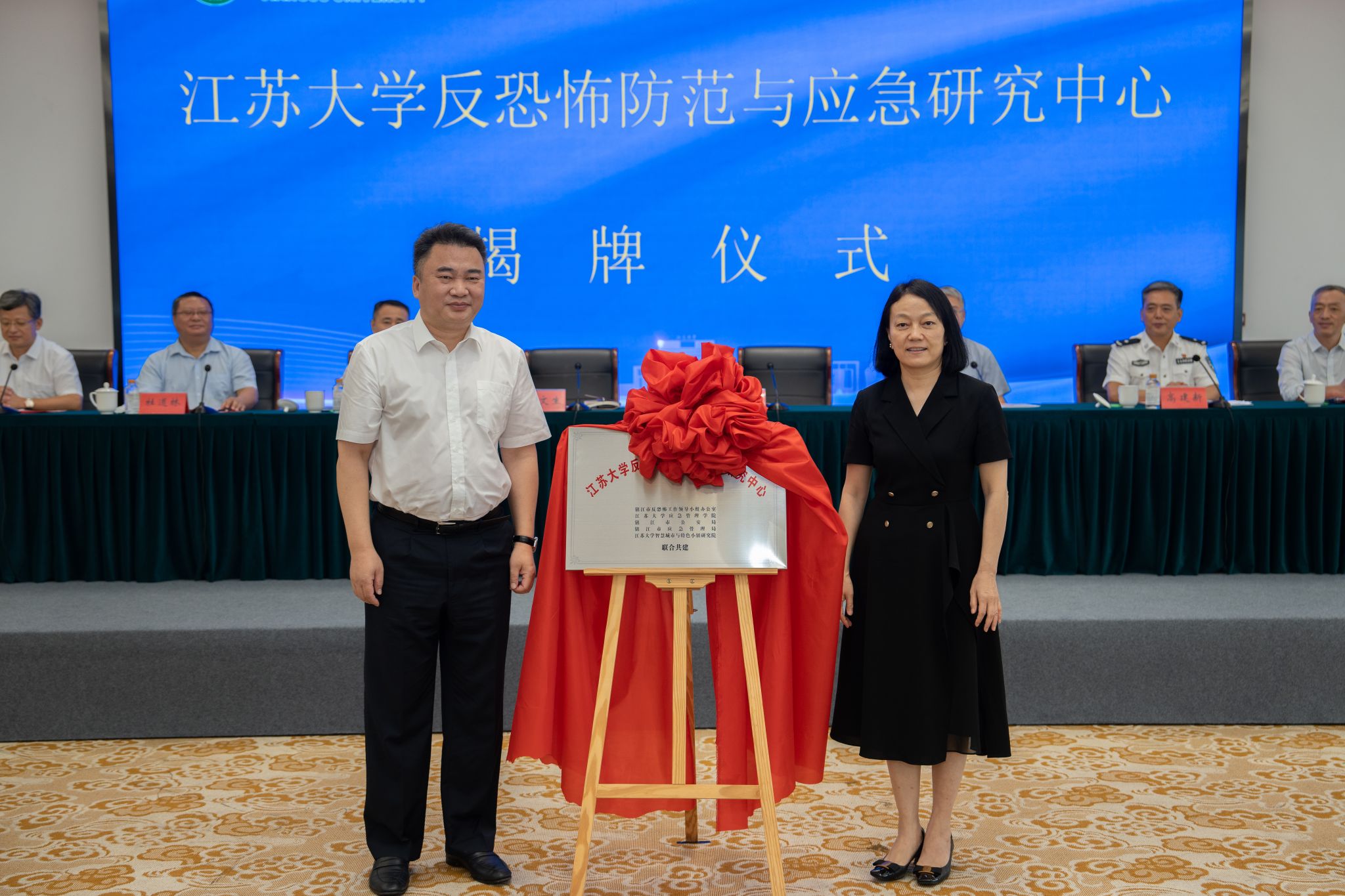 王文生、陈红为开云手机·官方站官网反恐怖防范与应急研究中心揭牌。镇江市反恐领导小组办公室、开云手机·官方站官网应急管理学院、镇江市公安局、镇江市应急管理局、开云手机·官方站官网智慧城市与特色小镇研究院等5家共建单位签约了共建协议。
