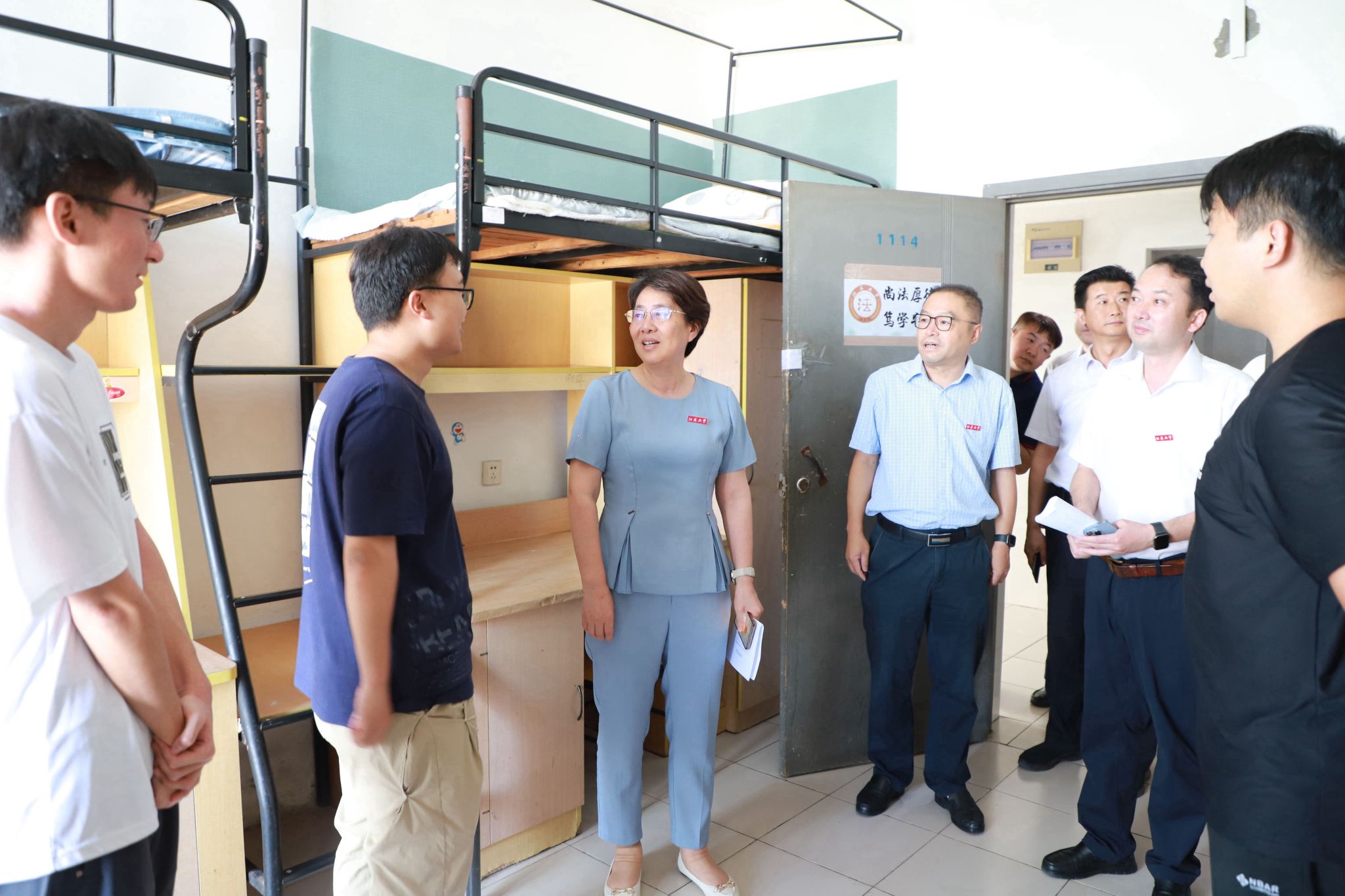 9月10日上午,校长邢卫红、副校长任旭东一行深入学生宿舍,走访看望2023级新生。