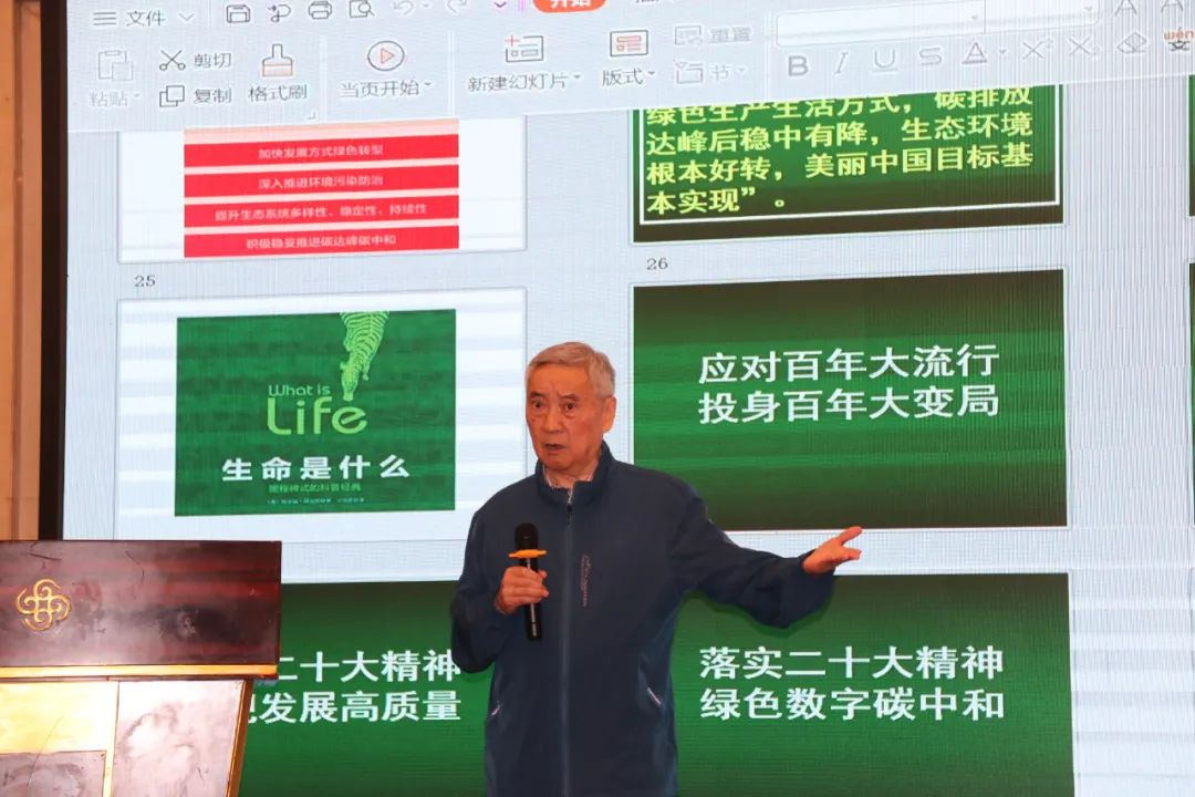 周宏春围绕《双碳背景下的绿色低碳转型路径与对策建议》作主旨报告,从统一认识、重点领域低碳转型、健全绿色低碳法律体系、四个绿色低碳创新策略、率先达峰试点示范等多个方面阐述如何实现绿色低碳转型。