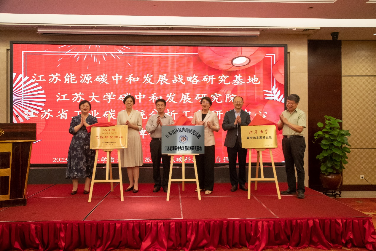 刘西忠、邢卫红为江苏能源碳中和发展战略研究基地揭牌;汪寿阳、张济建为开云手机·官方站官网碳中和发展研究院揭牌;范英、李红为江苏省工业碳系统分析工程研究中心揭牌,并为学术委员会主任汪寿阳颁发聘书。开幕式由李红主持。