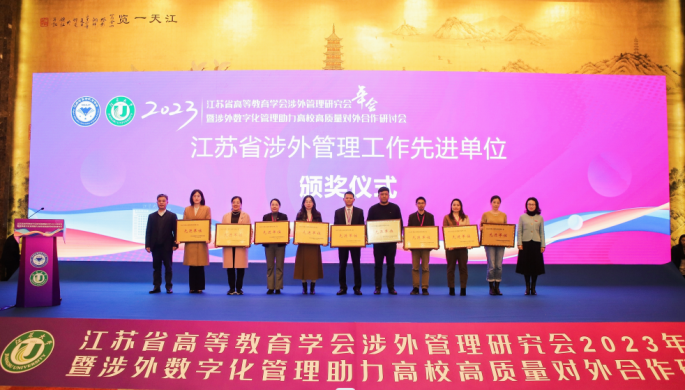 会议还表彰了2023年度江苏省涉外管理工作先进单位、先进个人和特殊贡献奖。我校荣获江苏省涉外管理工作先进单位荣誉称号,一人获评先进个人。(国际合作与交流处)