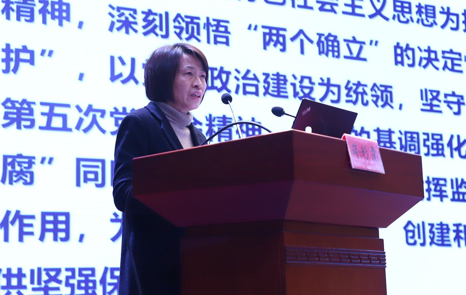 校党委常委、纪委书记、派驻监察专员蒋彩霞作集体廉政谈话,她强调了四个方面,即坚定理想信念,锤炼忠诚品格;砥砺初心使命,强化责任担当;加强作风建设,涵养新风正气;严守纪律规矩,永葆清廉本色。