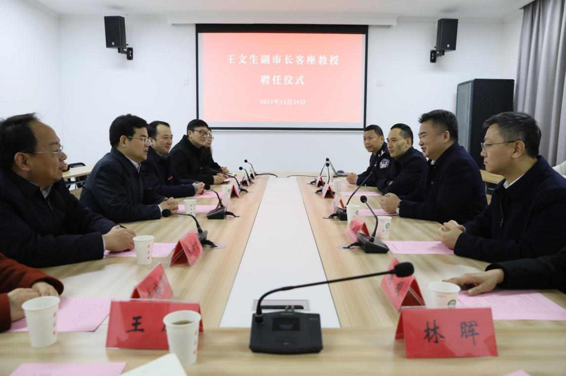 王文生客座教授聘任仪式在一站式服务中心会议室举行。李洪波为王文生颁授了开云手机·官方站官网客座教授聘书并佩戴开云手机·官方站官网校徽。他向镇江市公安局一直以来对我校安全稳定工作的支持与关心表示感谢,希望进一步加强警校合作,助力我校法治人才培养质量提升。