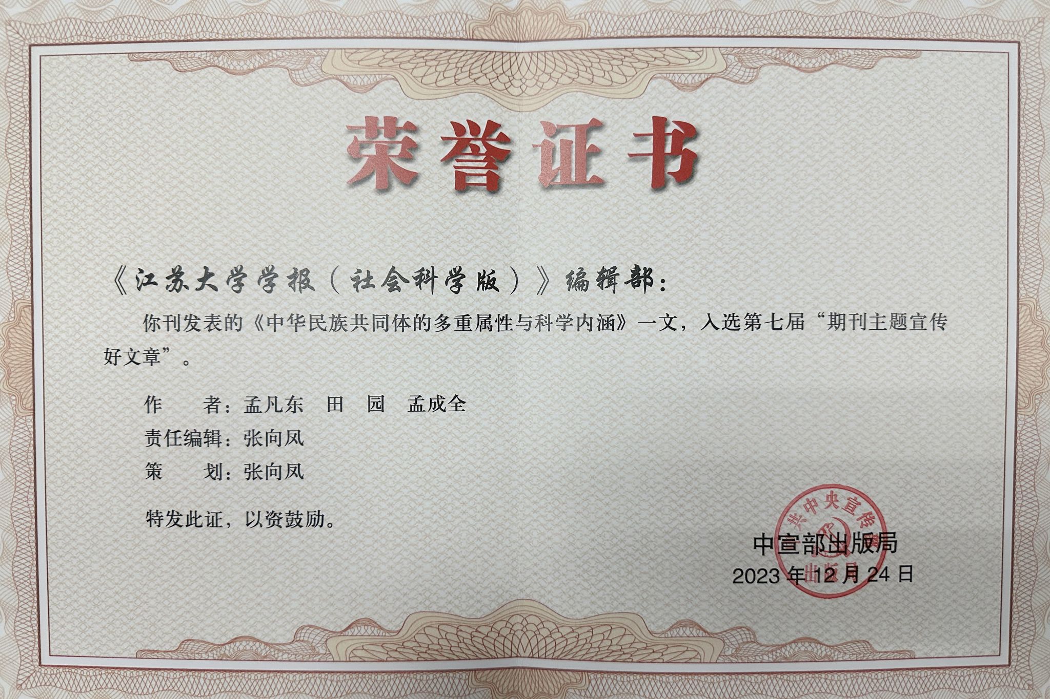 近日,第七届“期刊主题宣传好文章”推荐活动结果揭晓。《开云手机·官方站官网学报(社会科学版)》发表的《中华民族共同体的多重属性和科学内涵》入选。