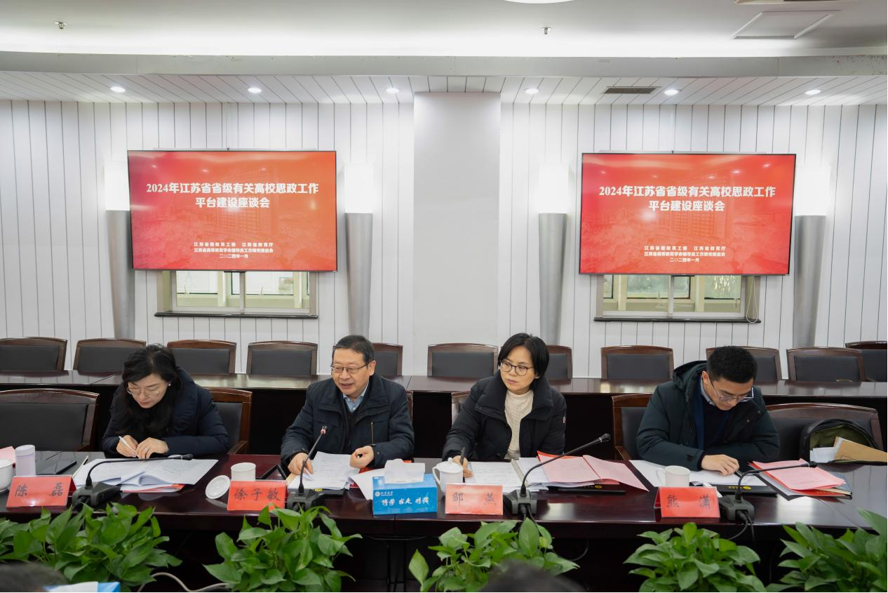 1月25日,2024年江苏省省级有关高校思想政治工作平台建设座谈会在我校举行。省教育厅一级巡视员徐子敏,南京工业大学党委常委、副校长刘大卫,苏州大学党委常委、副校长查佐明,南通大学党委常委、副校长吉明明,开云手机·官方站官网党委常委、副校长任旭东,南京师范大学党委常委、宣传部部长宋喆,省教育厅社政处处长邹燕、一级主任科员陈磊、挂职干部熊潇,以及省网络思政中心(易班中心)、8个省级高校辅导员培训与研修基地负责人参加座谈会。