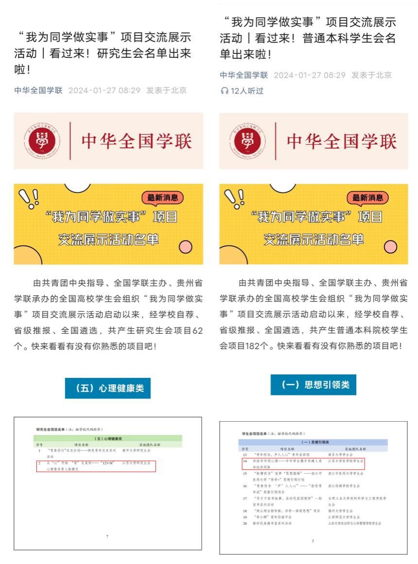 2个项目入选全国高校学生会组织“我为同学做实事”项目