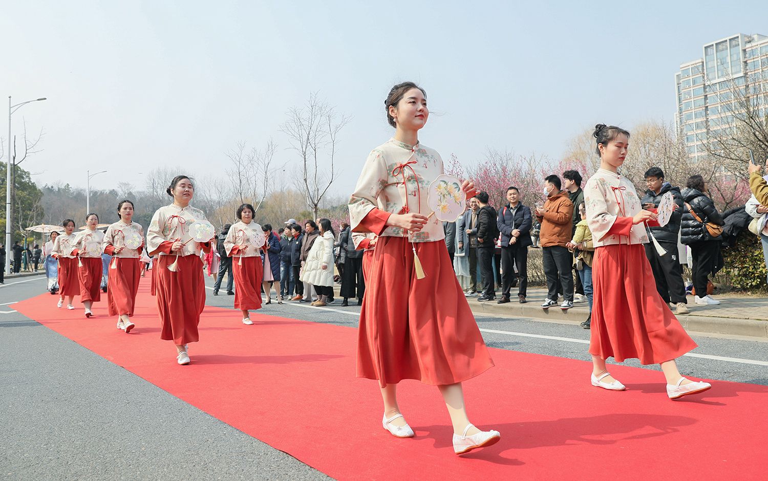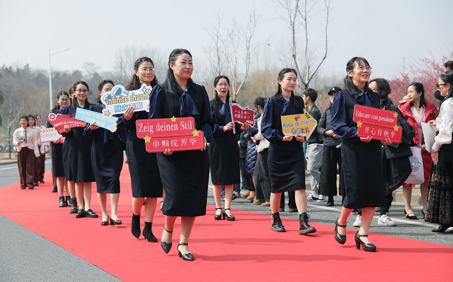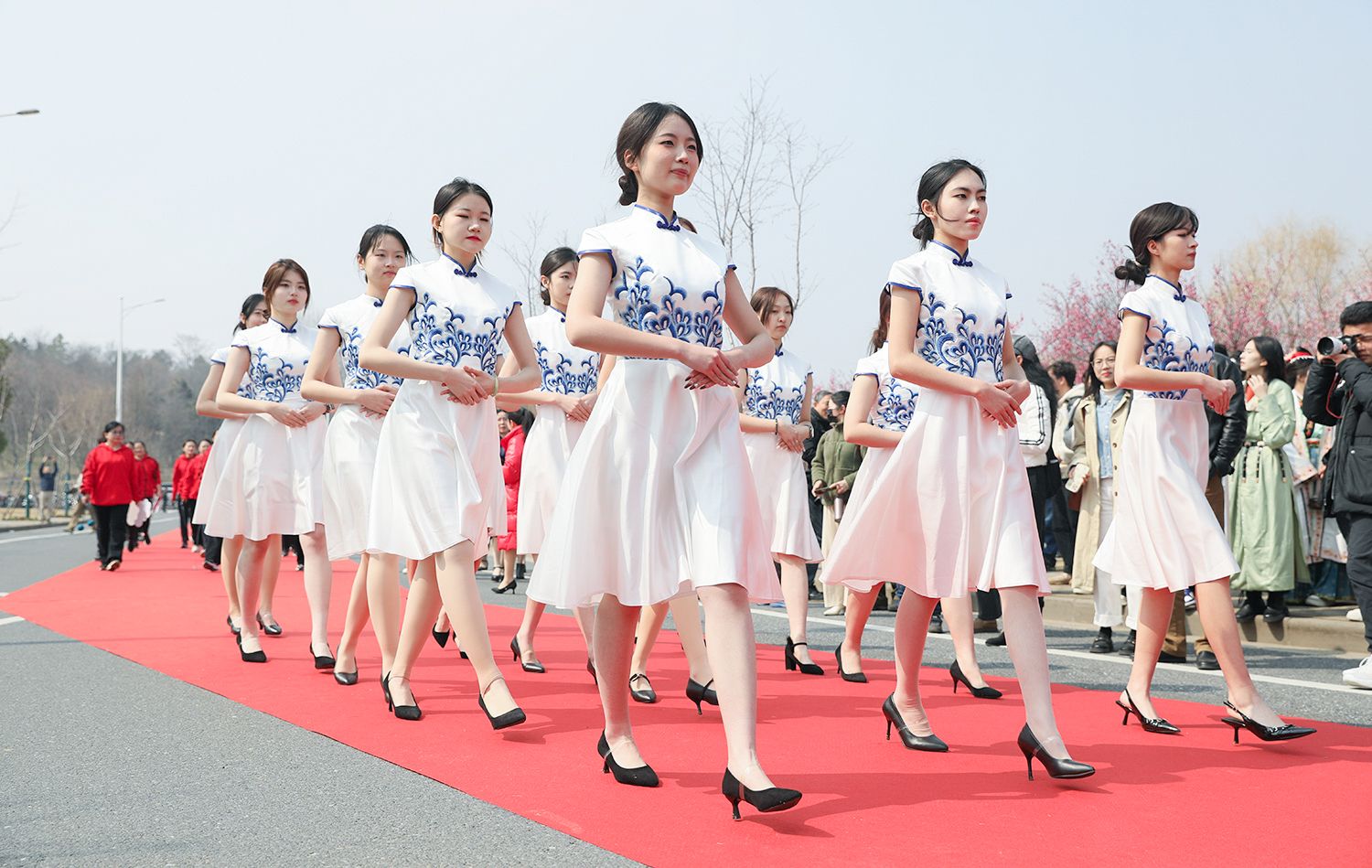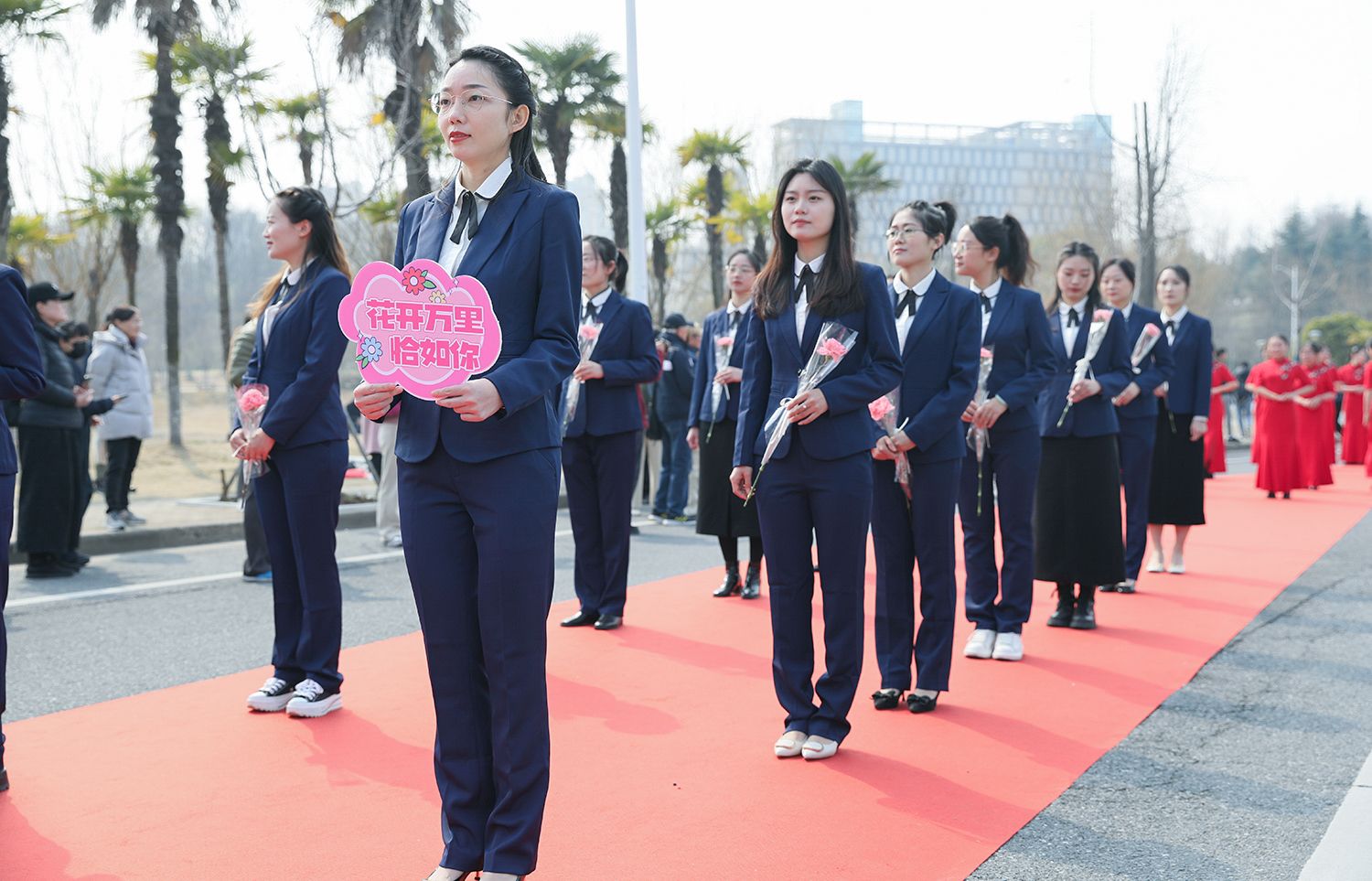 早春江大,处处是生机勃勃的景象。3月8日,是第114个国际劳动妇女节,学校在梅园举办“美丽邂逅,梦想绽放”庆祝“三八”国际妇女节活动暨首届梅樱节开幕式。由女教工、女大学生、女企业家组成的33支队伍共聚梅园,借满园春色,用“红毯秀”的形式展示女性风采,庆祝自己的节日。