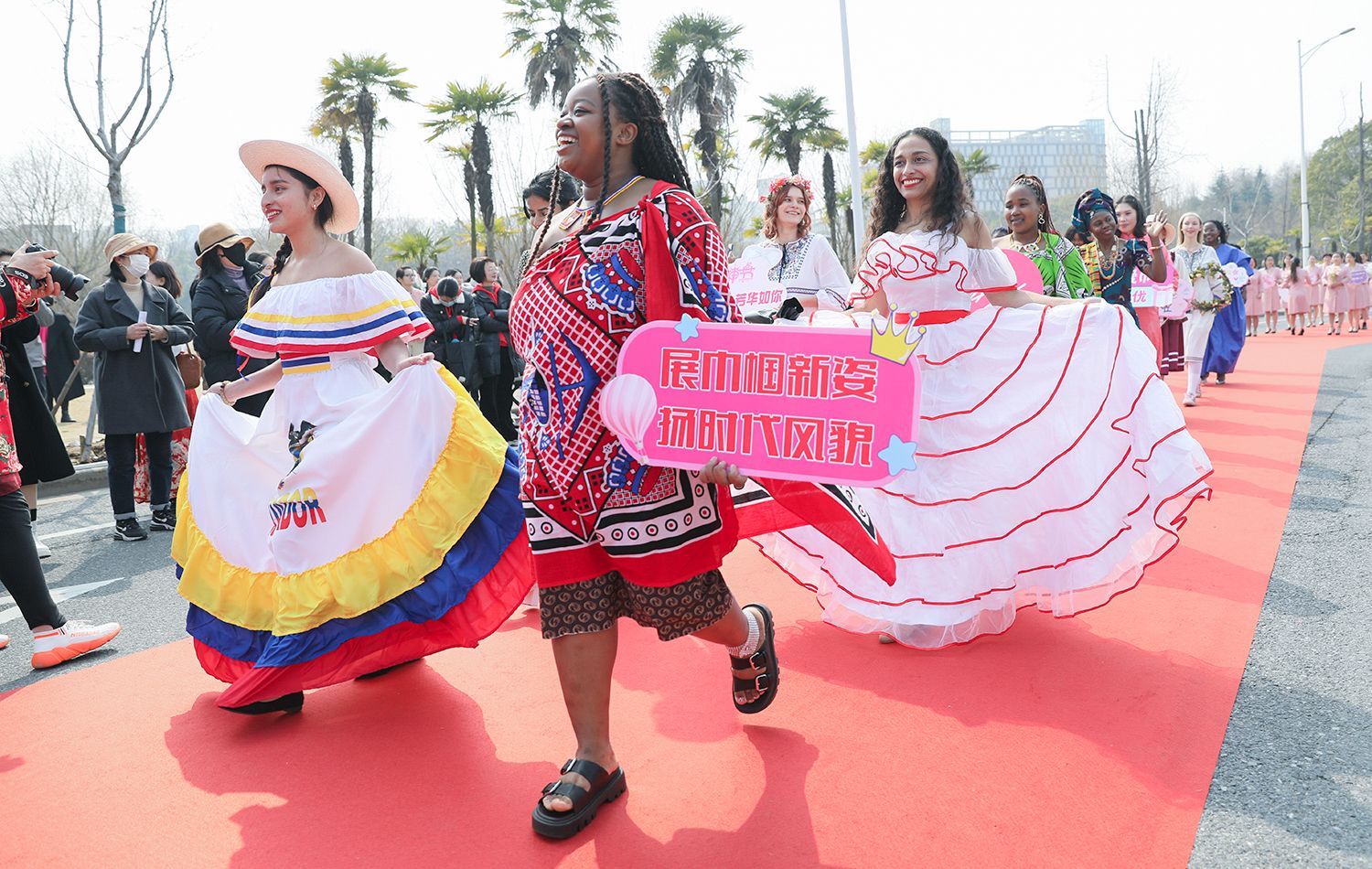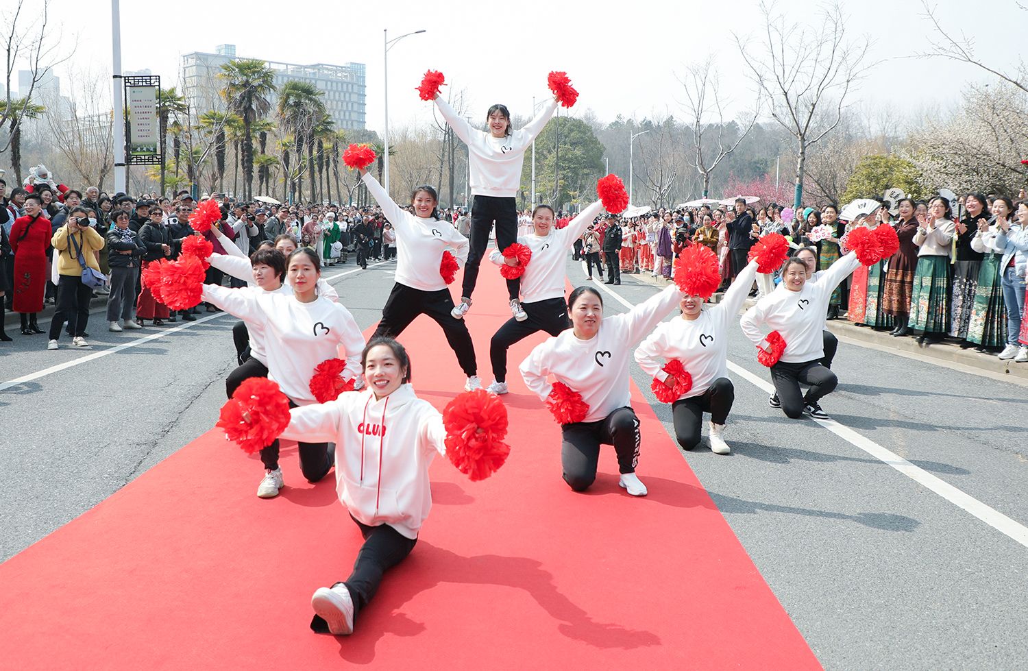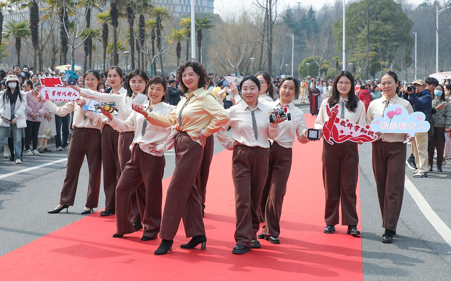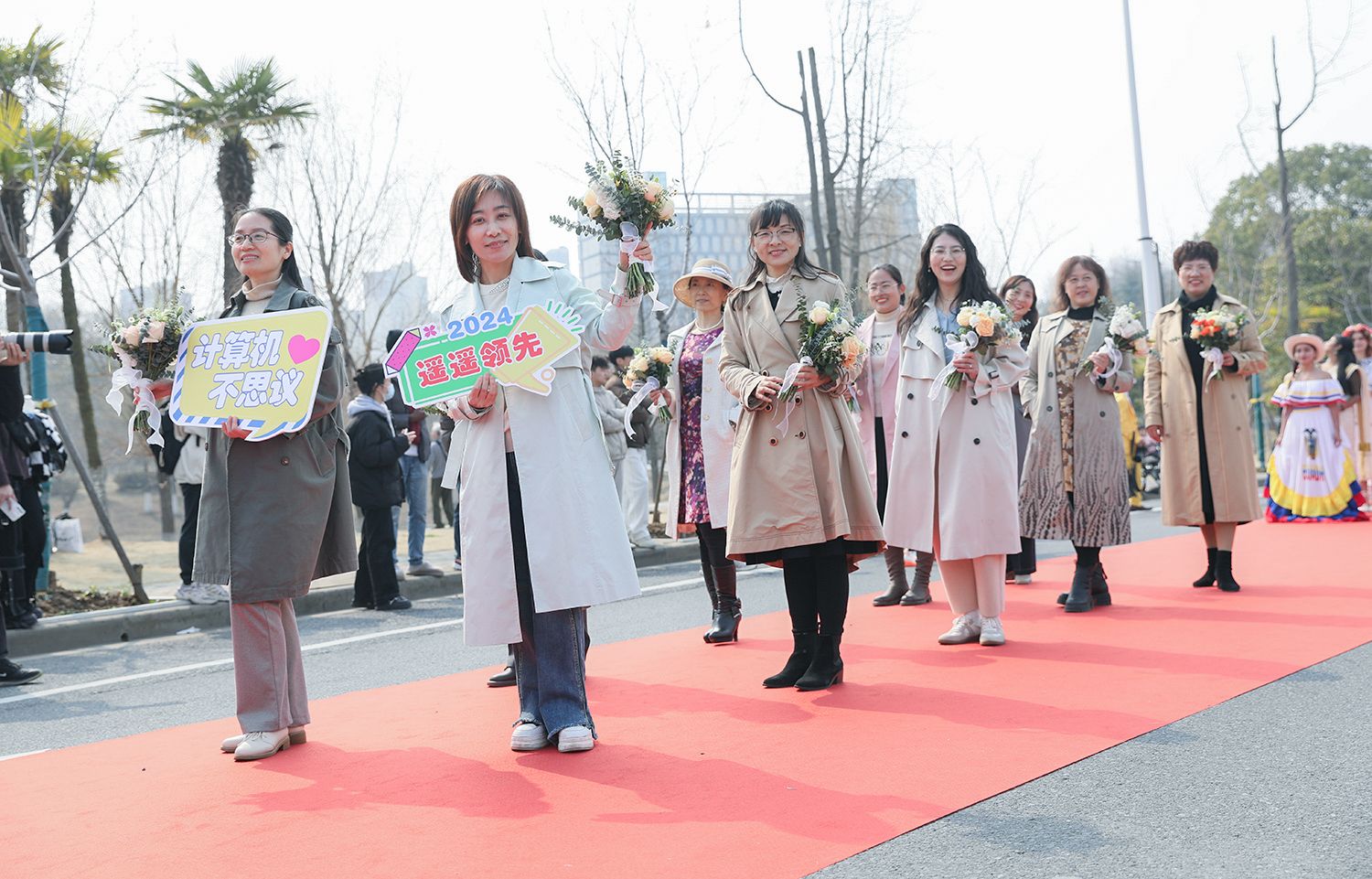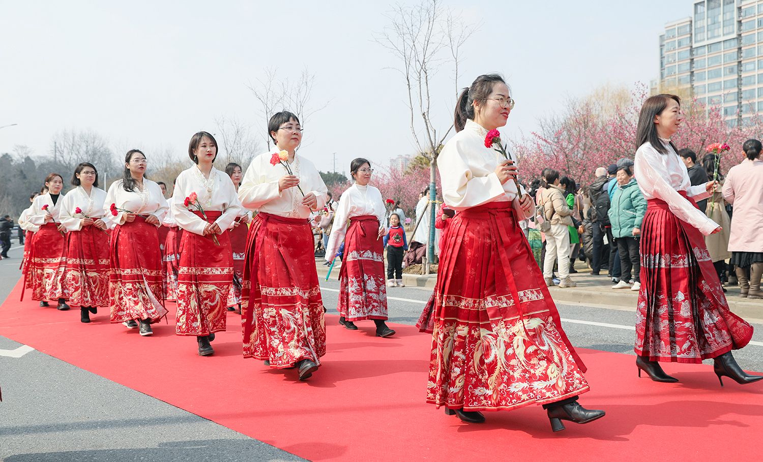 早春江大,处处是生机勃勃的景象。3月8日,是第114个国际劳动妇女节,学校在梅园举办“美丽邂逅,梦想绽放”庆祝“三八”国际妇女节活动暨首届梅樱节开幕式。由女教工、女大学生、女企业家组成的33支队伍共聚梅园,借满园春色,用“红毯秀”的形式展示女性风采,庆祝自己的节日。