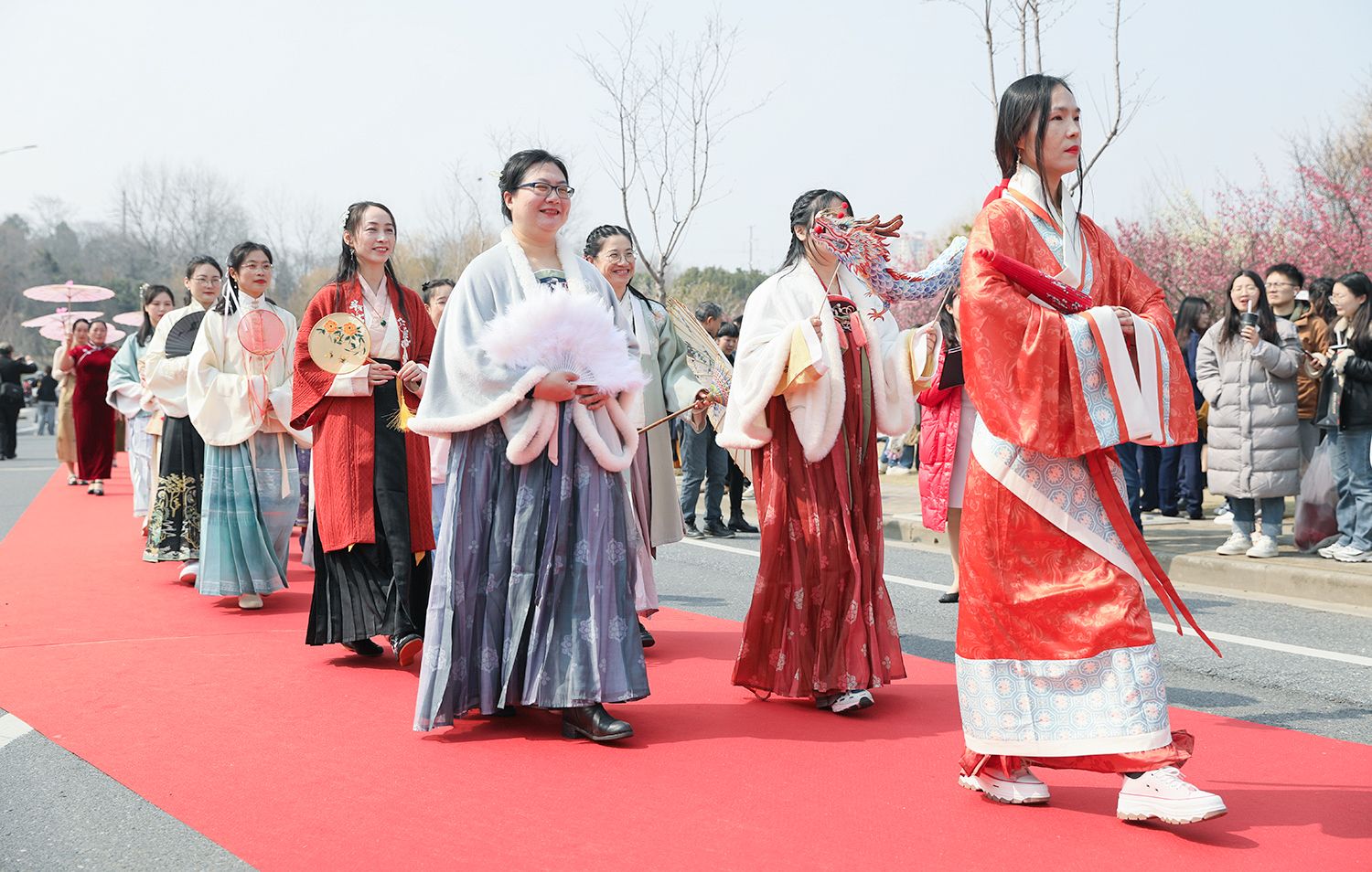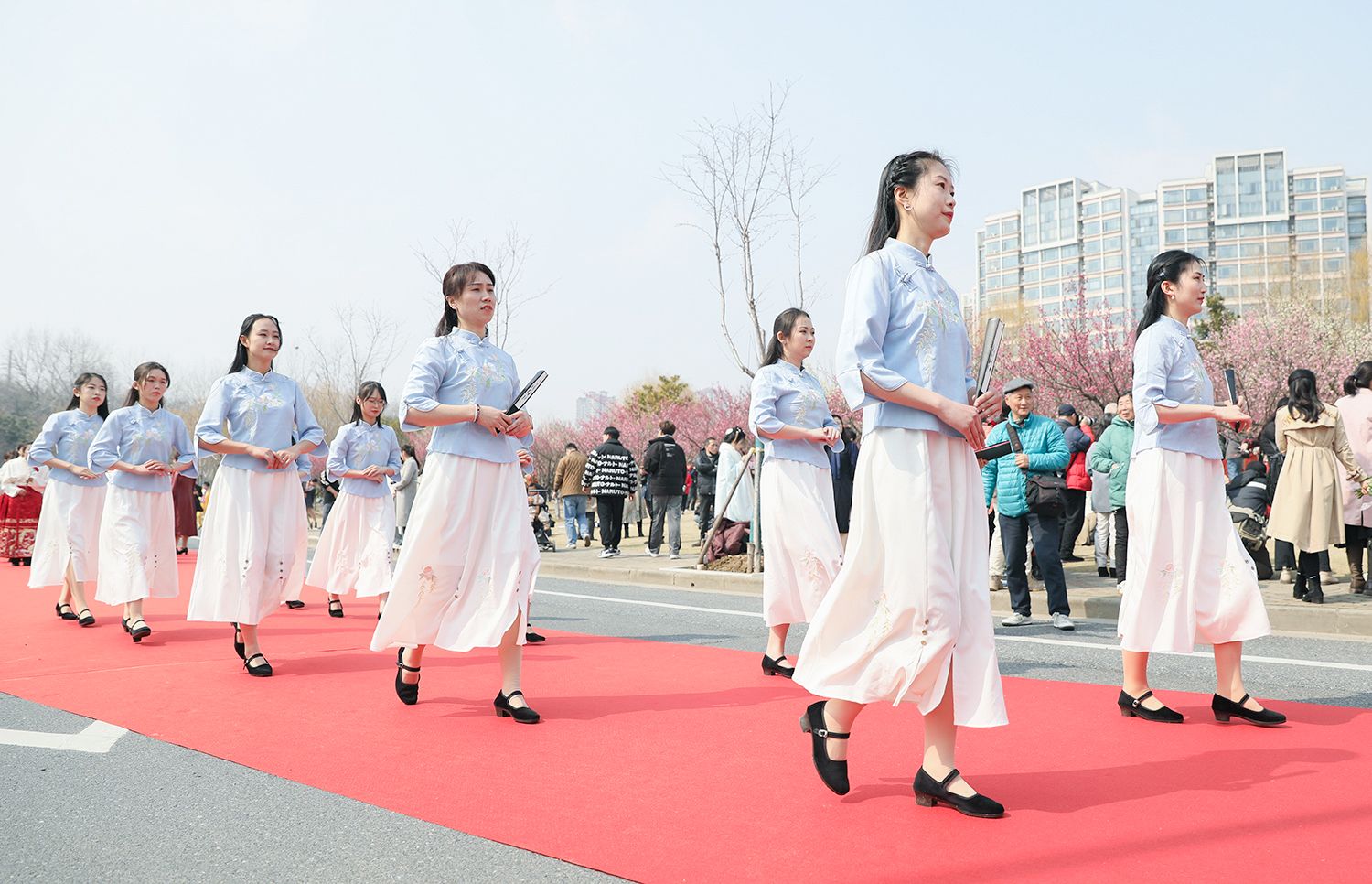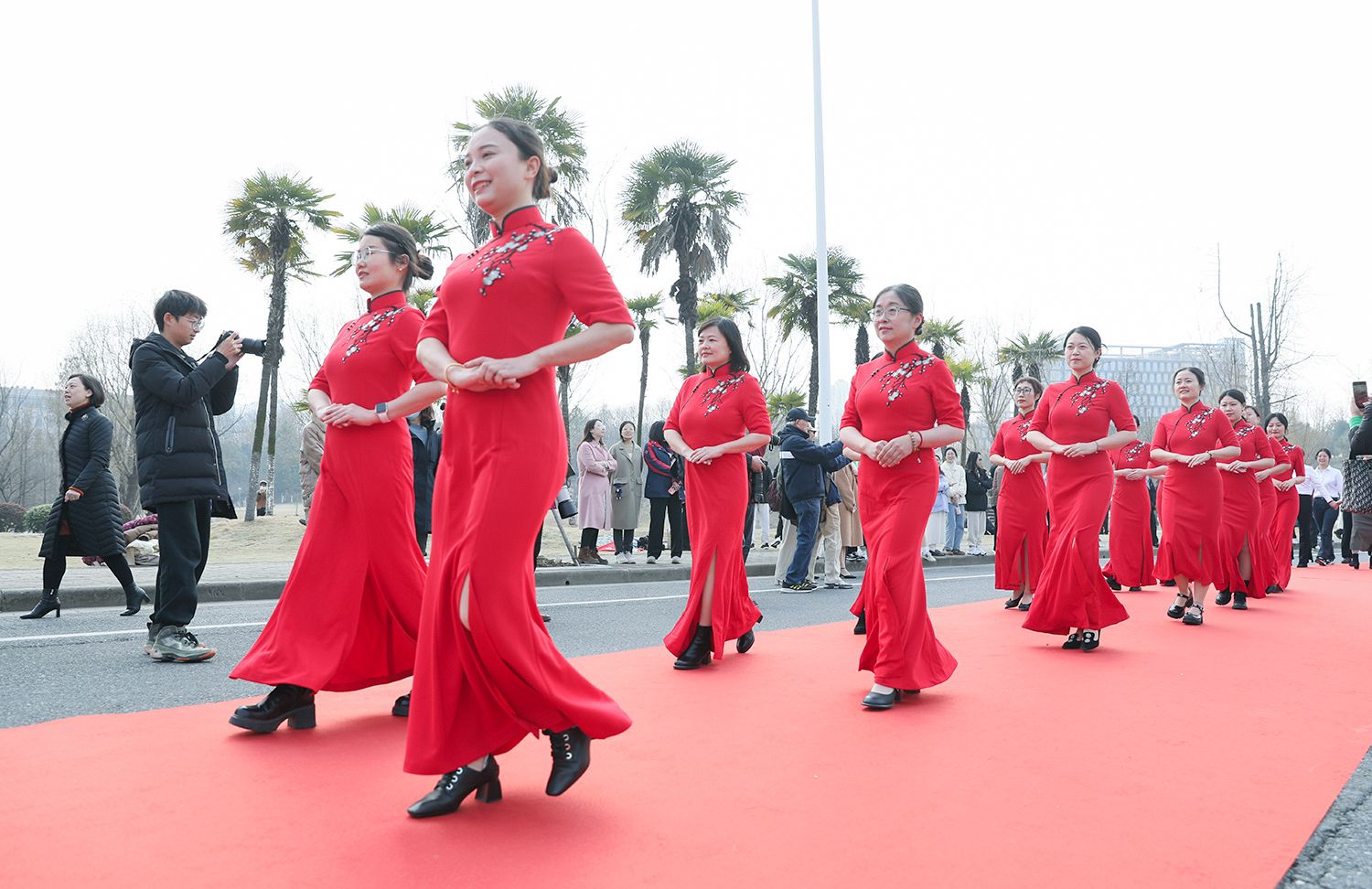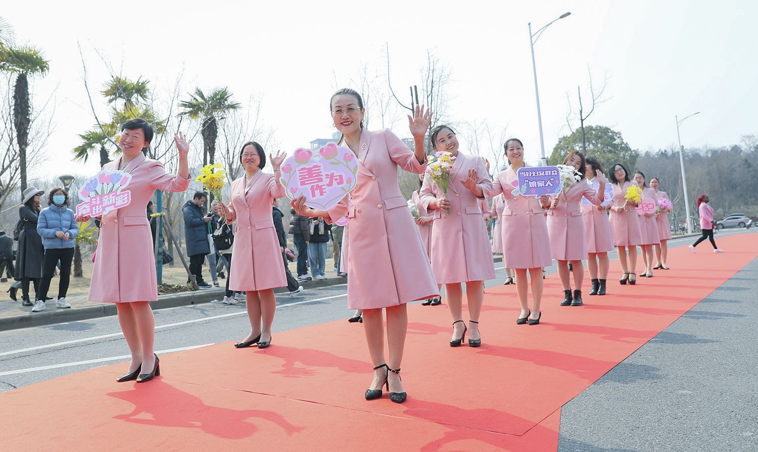 早春江大,处处是生机勃勃的景象。3月8日,是第114个国际劳动妇女节,学校在梅园举办“美丽邂逅,梦想绽放”庆祝“三八”国际妇女节活动暨首届梅樱节开幕式。由女教工、女大学生、女企业家组成的33支队伍共聚梅园,借满园春色,用“红毯秀”的形式展示女性风采,庆祝自己的节日。