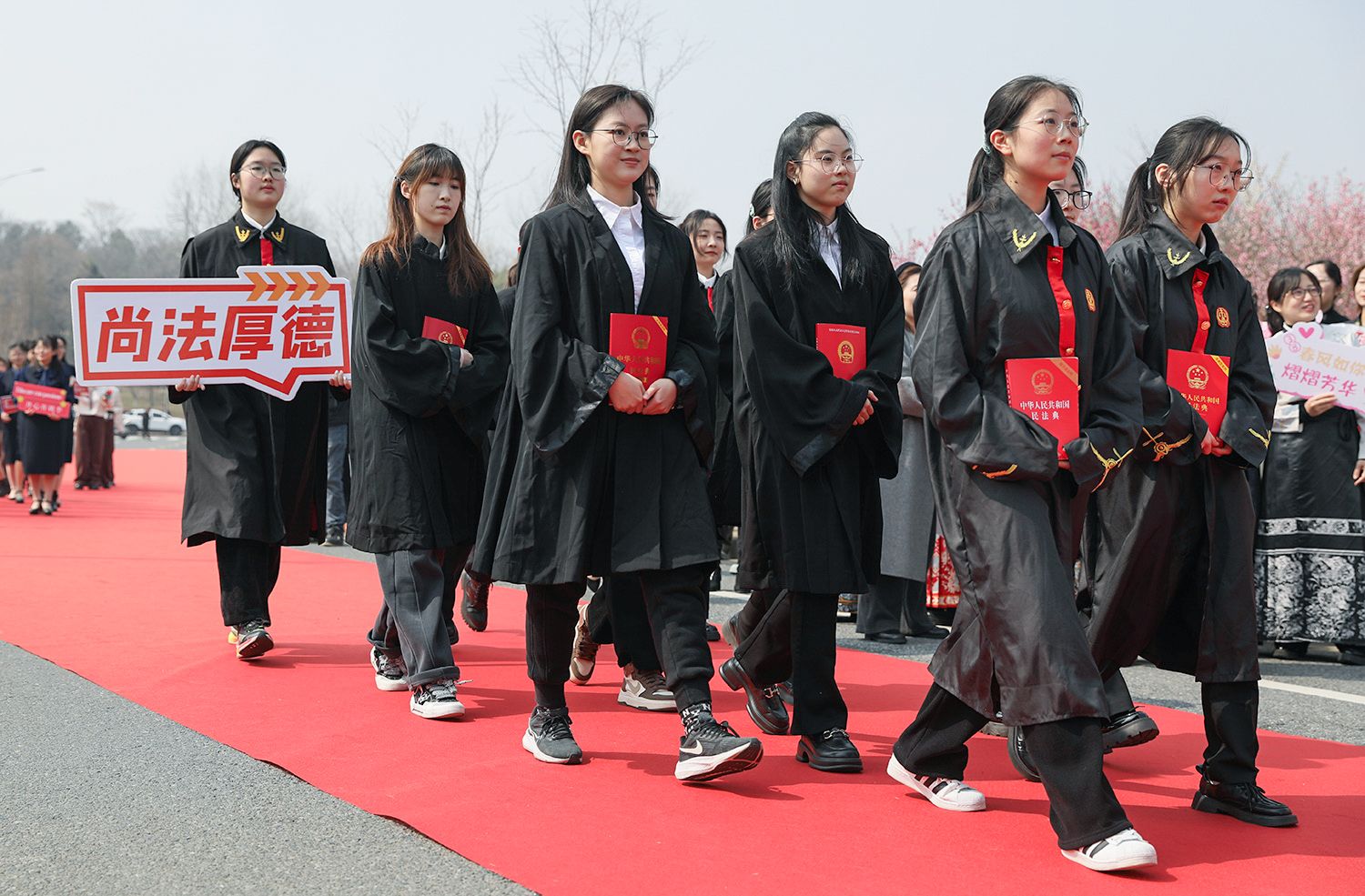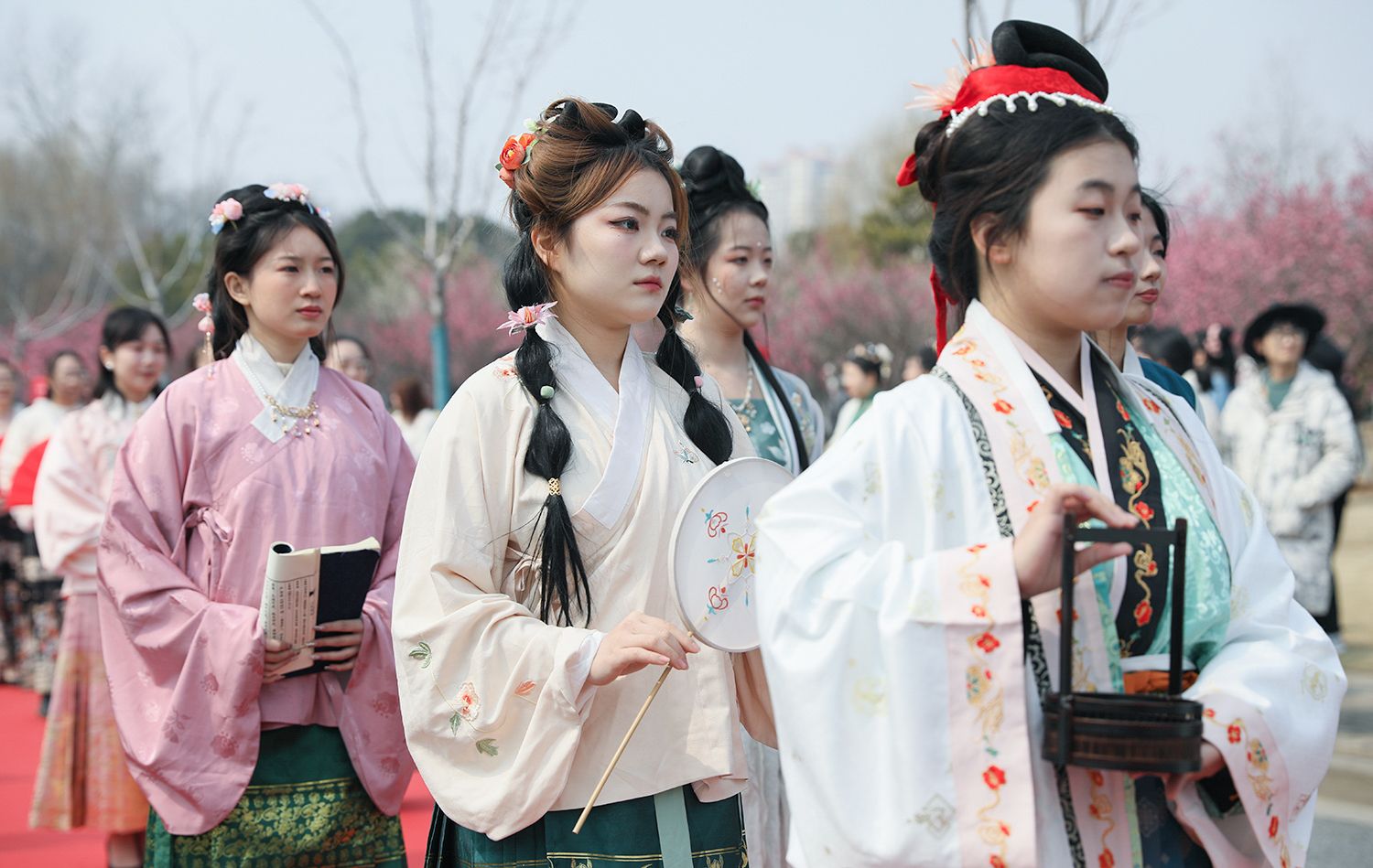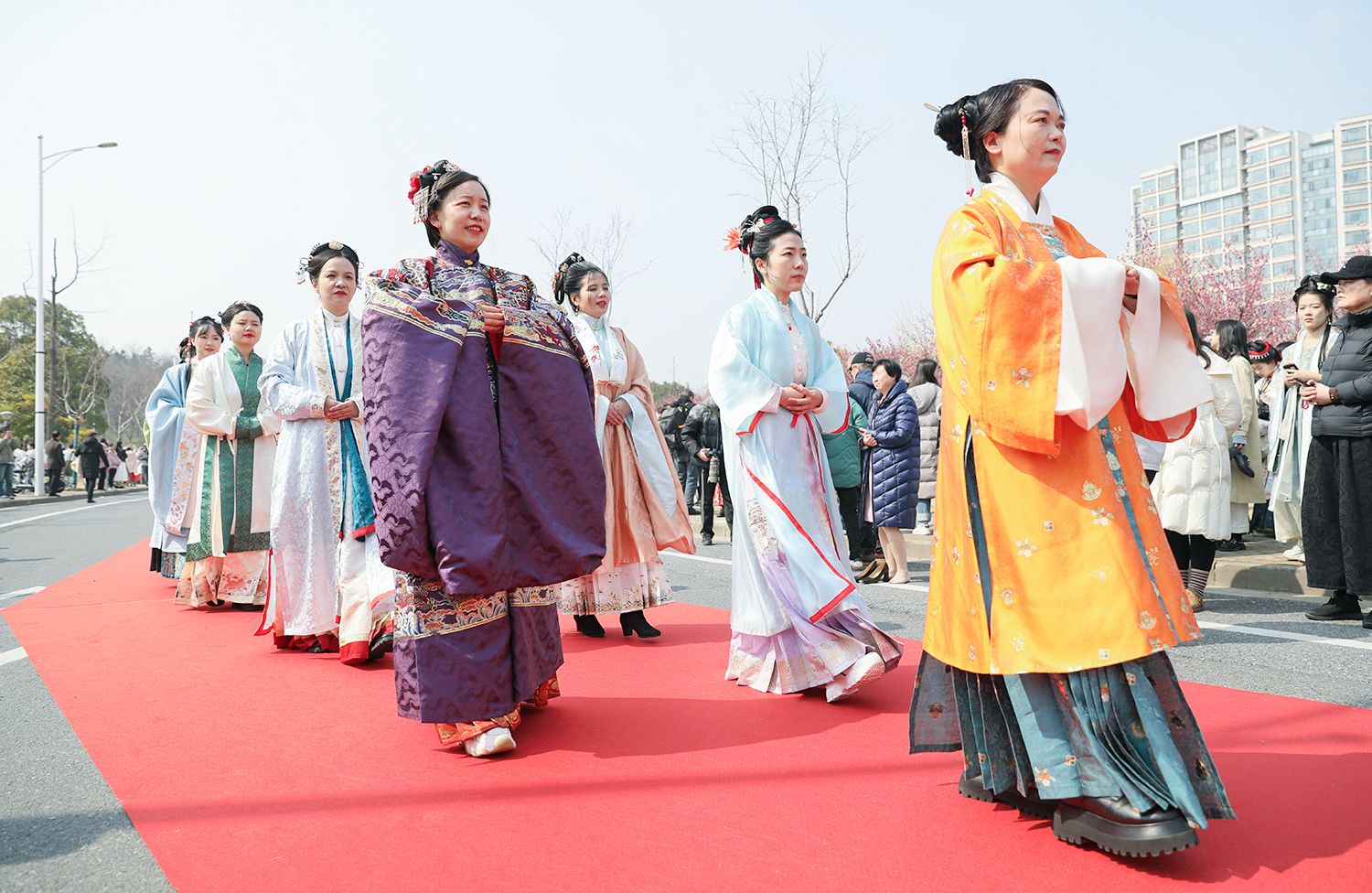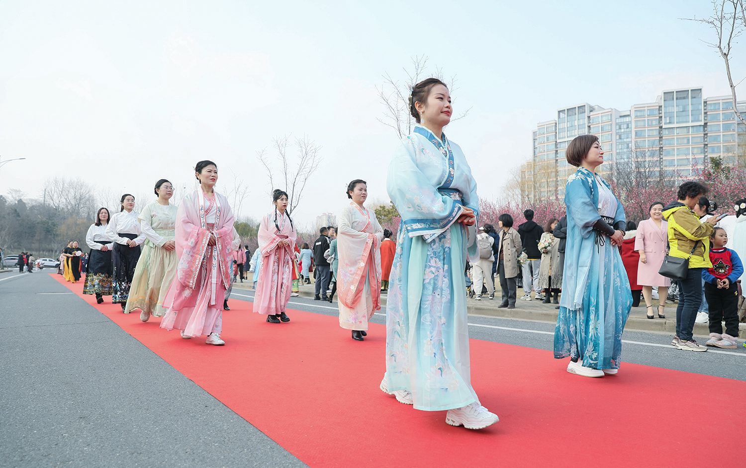 早春江大,处处是生机勃勃的景象。3月8日,是第114个国际劳动妇女节,学校在梅园举办“美丽邂逅,梦想绽放”庆祝“三八”国际妇女节活动暨首届梅樱节开幕式。由女教工、女大学生、女企业家组成的33支队伍共聚梅园,借满园春色,用“红毯秀”的形式展示女性风采,庆祝自己的节日。