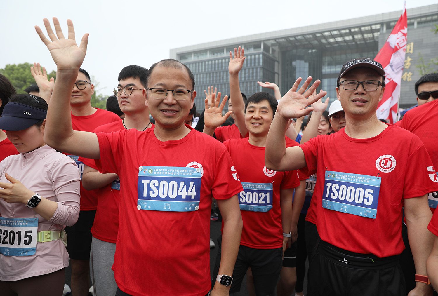 李洪波说,江大校园马拉松赛深受师生关注和喜爱,已成为构筑校园体育文化、传递“江大精神”的靓丽名片。奔跑在繁花似锦、诗意盎然的校园赛道上,不仅能体验到自然之美、运动之趣,更能感受到学校浓厚的人文氛围与朝气蓬勃的前行状态。他希望全体选手发扬团结协作、顽强拼搏、永不言弃的体育精神,赛出风格、赛出水平、赛出友谊,充分展现江大人团结一心、奋勇前行的良好精神风貌,进一步增强身为江大人的荣誉感、使命感、责任感,全面汇聚起推进“双一流”创建和特色鲜明高水平大学建设的磅礴力量。