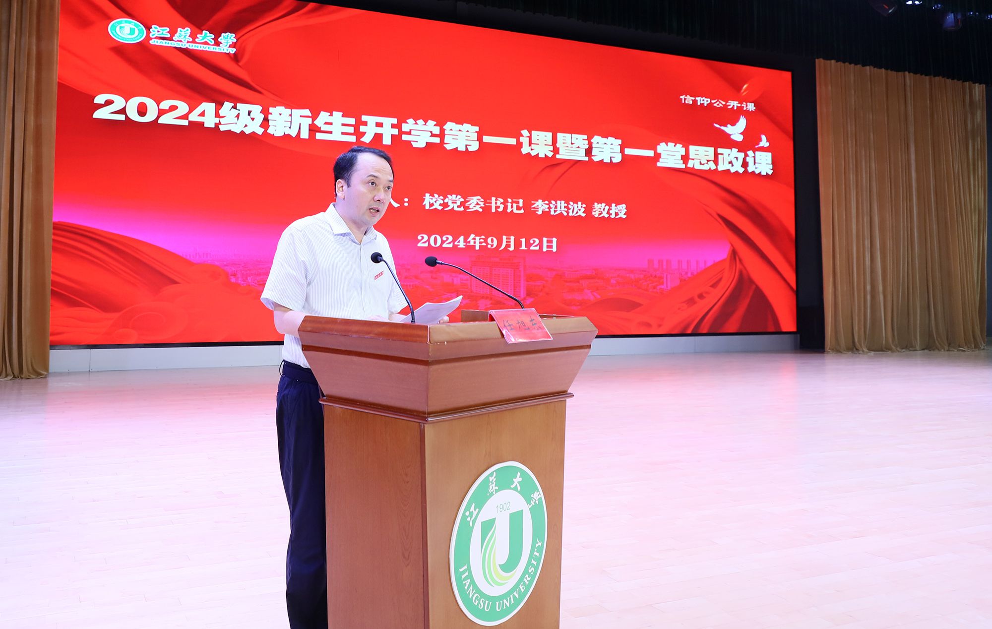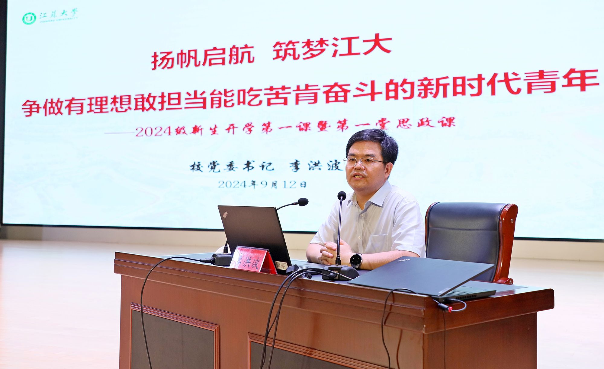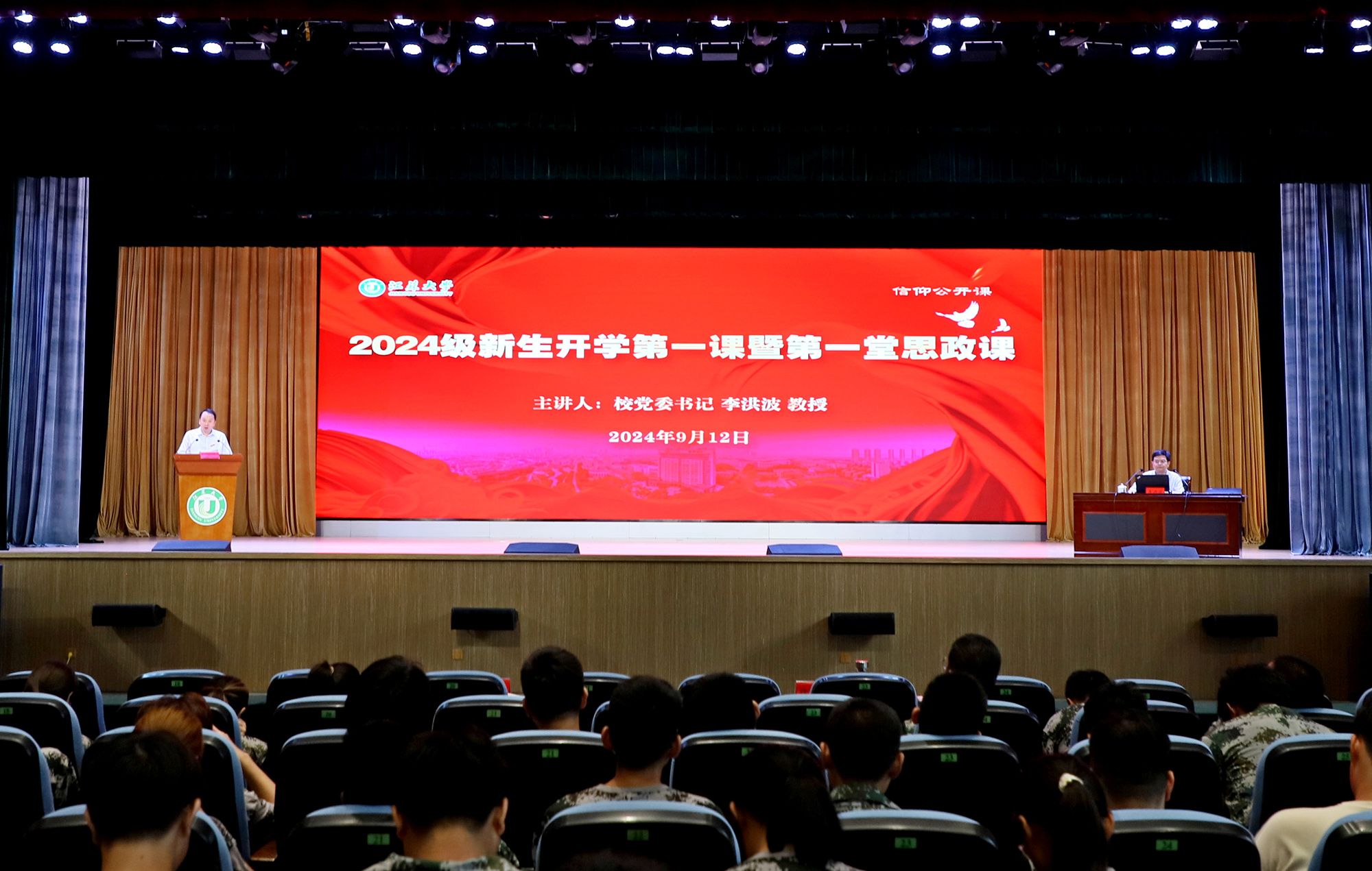 9月12日,学校举办2024级新生开学第一课暨第一堂思政课,引导新生更好地适应大学生活,帮助他们系好大学的“第一粒扣子”。校党委书记李洪波以《扬帆启航 筑梦江大 争做有理想敢担当能吃苦肯奋斗的新时代青年》为题,为全体新生授课。