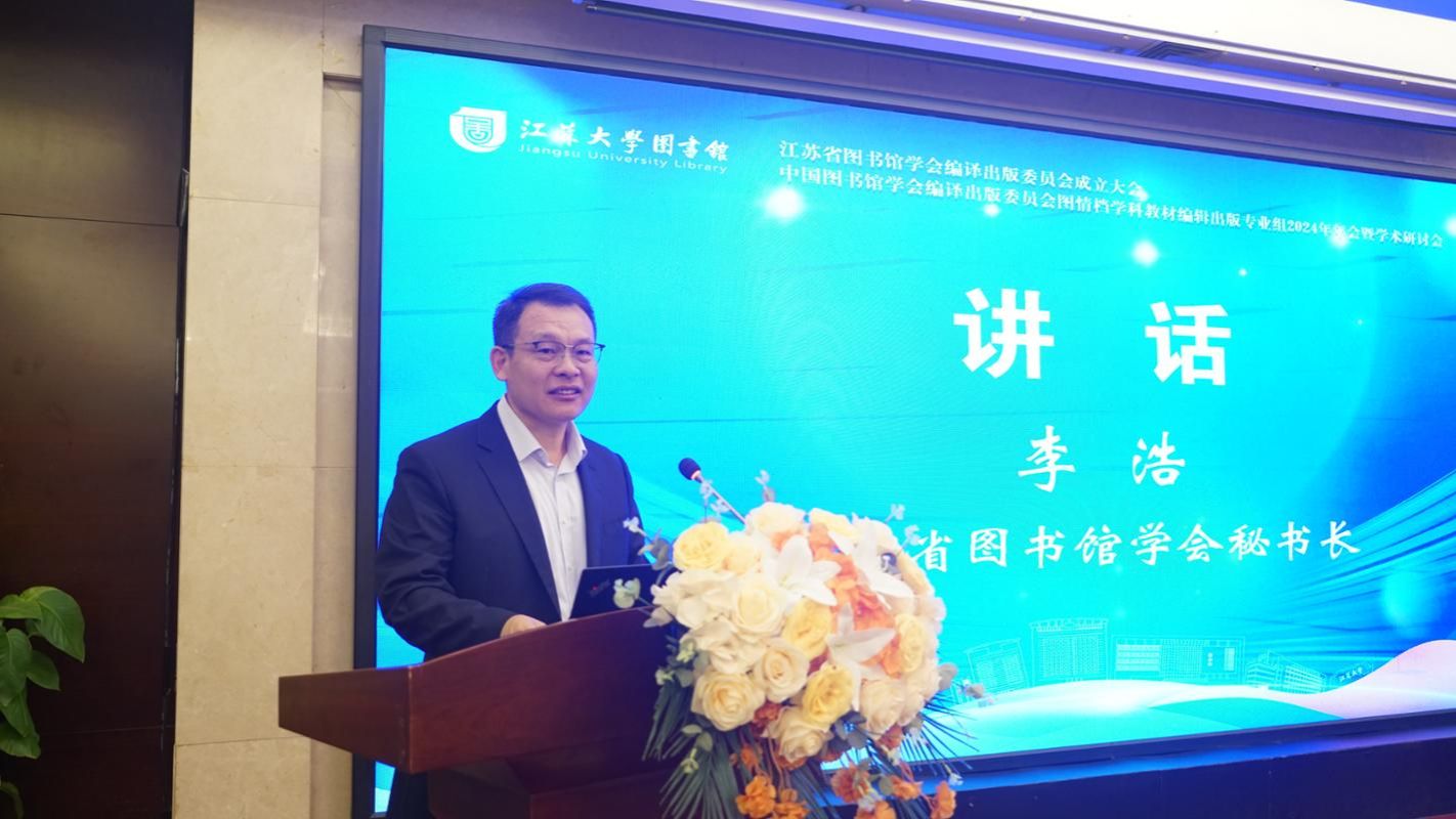 江苏省图书馆学会秘书长李浩强调了出版工作在现代社会中的重要作用,期待编译出版专业委员会能凝聚行业智慧,推动学习与研究的深化,共同探索编译出版领域的新思路、新方法,不断提升图书馆服务质量。
