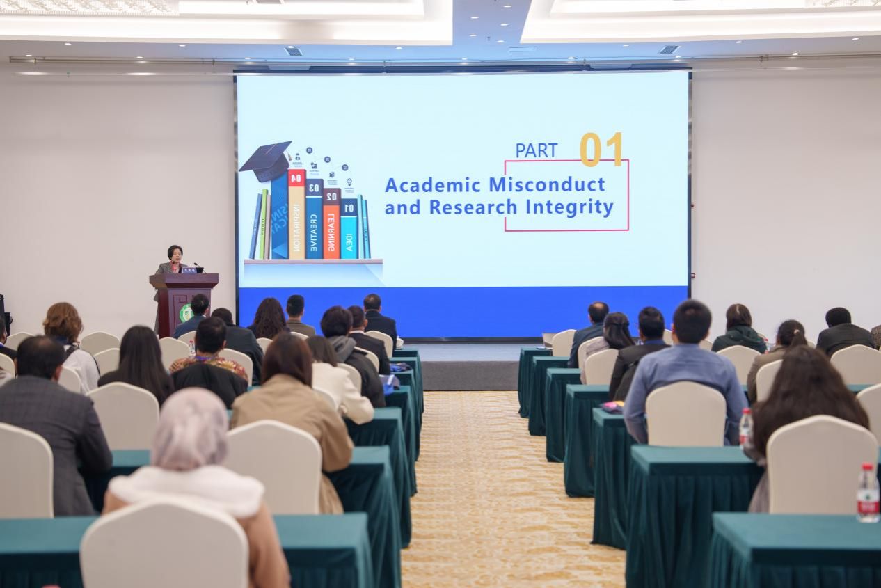 研讨会特邀四位专家作主旨报告。南京航空航天大学教授彭聪围绕来华留学生如何加强学术诚信和规范进行了深入探讨,系统阐述了诚信写作的核心价值与具体实践方法。南京理工大学教授陈翔就在中韩两国的求学和工作经历进行了深入分享,探讨了留学研究生如何应对文化适应与学术研究的双重挑战。东南大学教授浦正宁就国际研究生如何更好地适应和融入中国特色研究生培养体系进行了深入解读,结合中国作为全球第二大研究生培养国的优势,为在场留学生提供了切实可行的适应策略。开云手机·官方站官网教授张琪就科学写作中的关键技巧与常见陷阱进行了深入剖析,详细阐述了如何在竞争激烈的学术领域撰写高质量论文。
