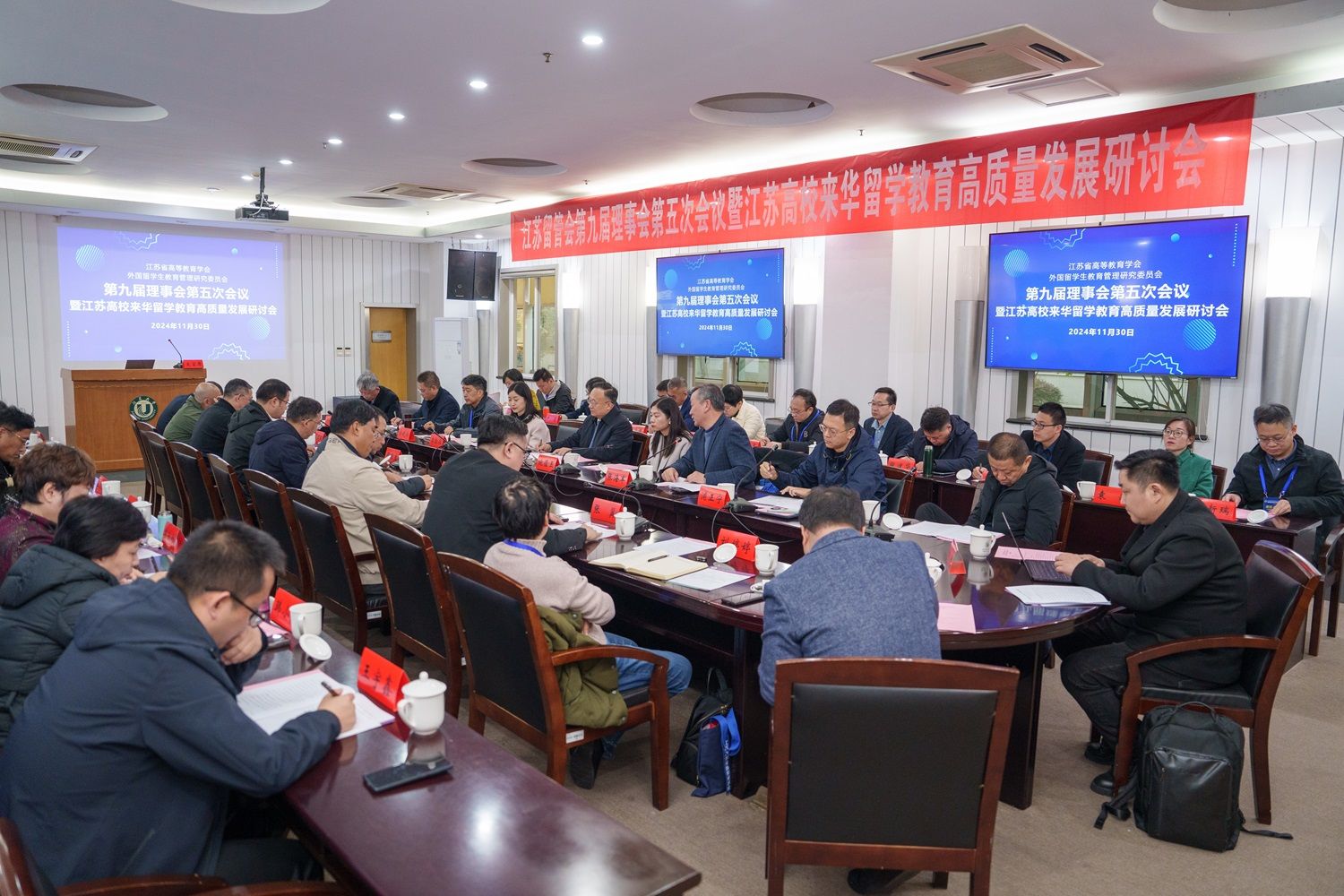 11月30日,江苏省高等教育学会外国留学生教育管理研究委员会(以下简称“江苏留管会”)第九届理事会第五次会议暨江苏高校来华留学教育高质量发展研讨会在开云手机·官方站官网举行。江苏省教育厅副厅长杨树兵、对外合作与交流处处长施蕴玉、四级调研员李勤径出席会议。江苏留管会副理事长俞晓南、34个理事高校的代表和学会咨询专家参加会议,会议由副理事长兼秘书长张海军主持。