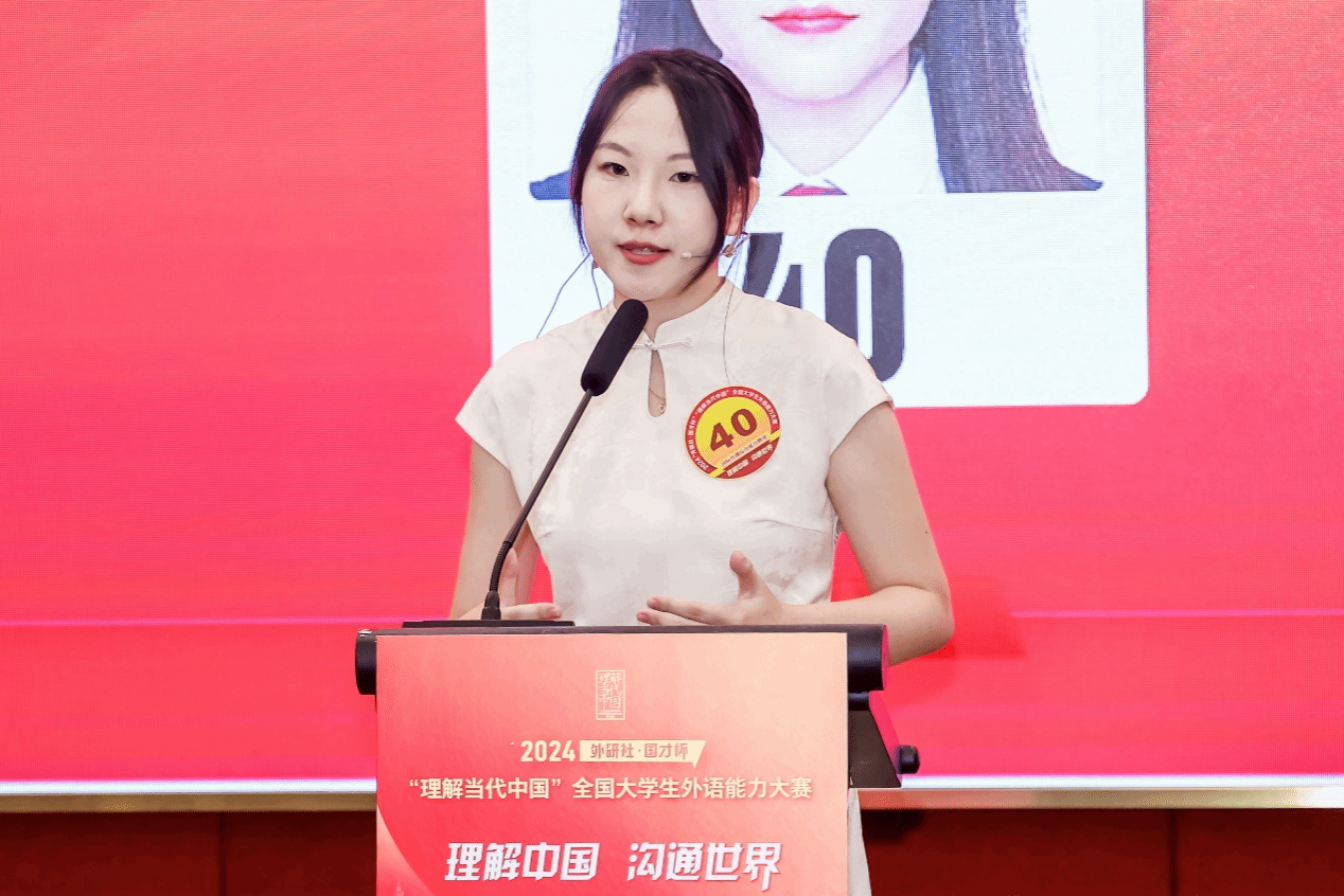 在英语组国际传播综合能力赛项中,外国语学院潘烨菲同学立足自身经历和国际视角,向世界讲述了中国现代化进程中的公平和普惠追求,以及中国政府“以人为本、服务民生”的宗旨,体现了“发展为了人民、发展依靠人民、发展成果由人民共享”的发展观和现代化理念。在回答问题环节,潘烨菲的表现再次获得评委的高度肯定,展现了她优秀的外语功底、思辨能力、跨文化沟通能力和“讲好中国故事”的国际传播能力。