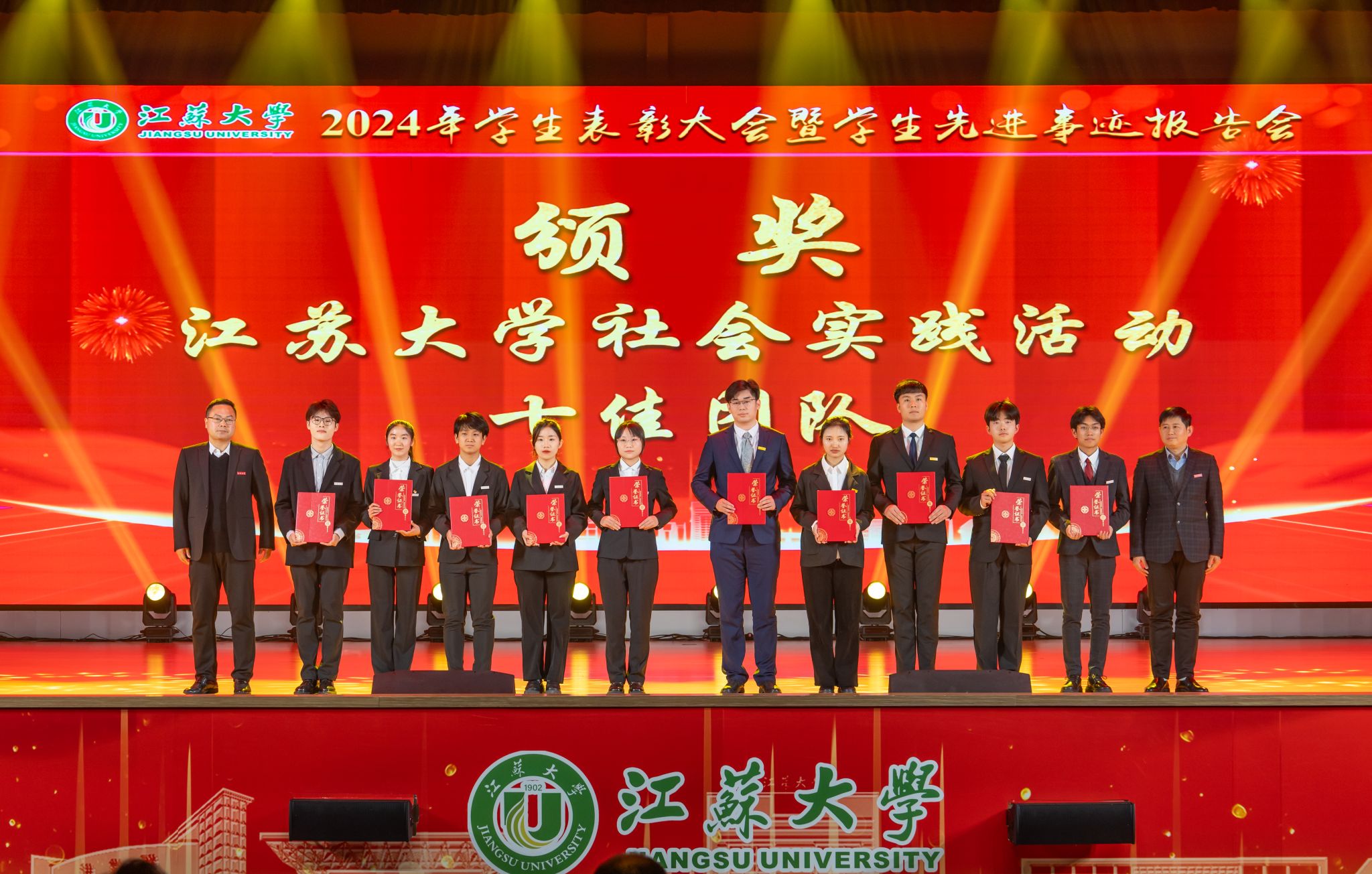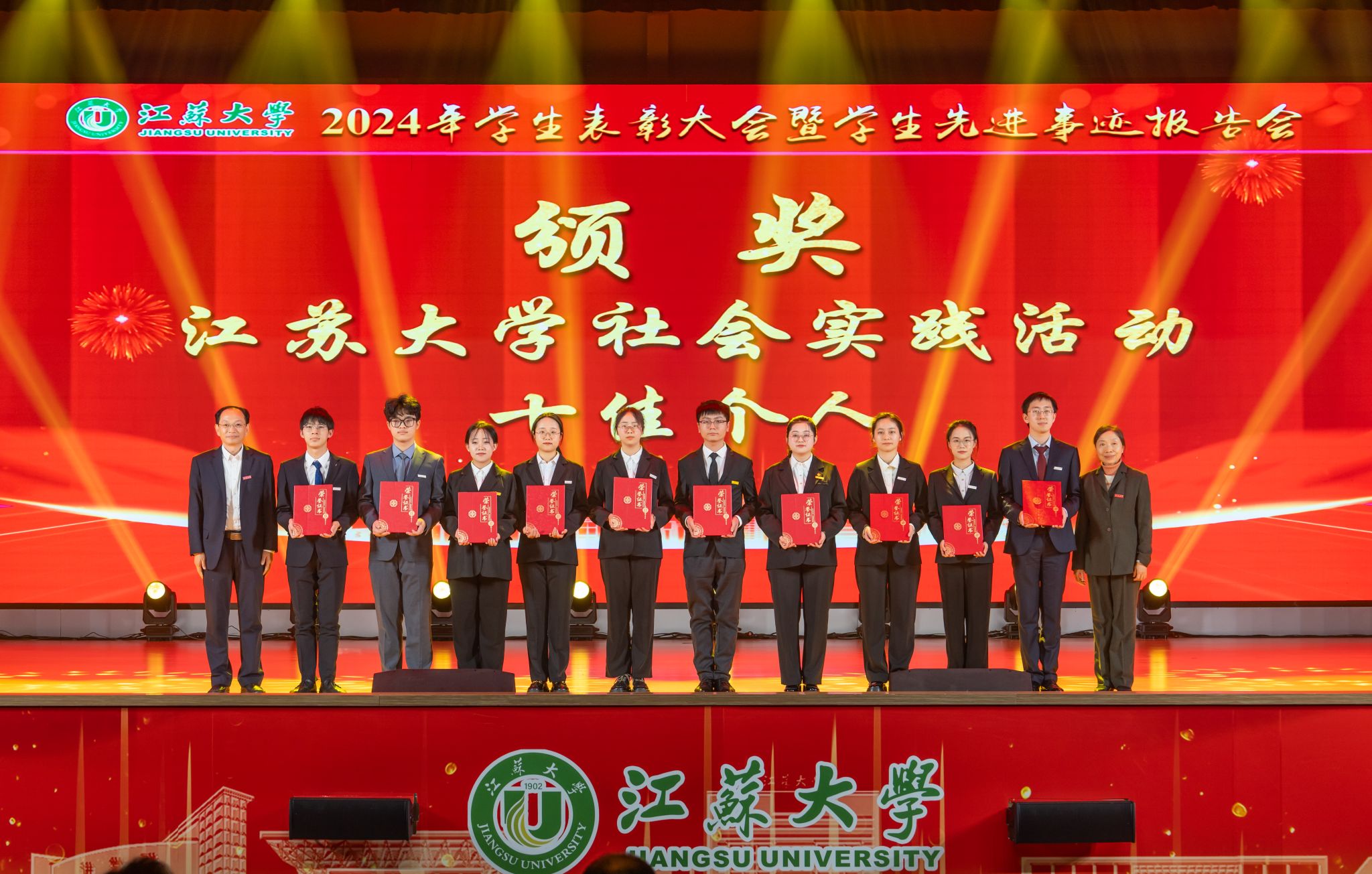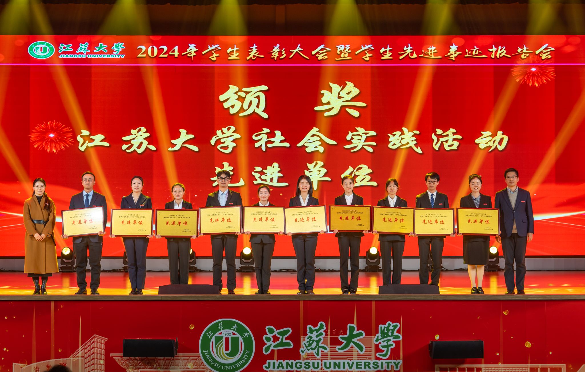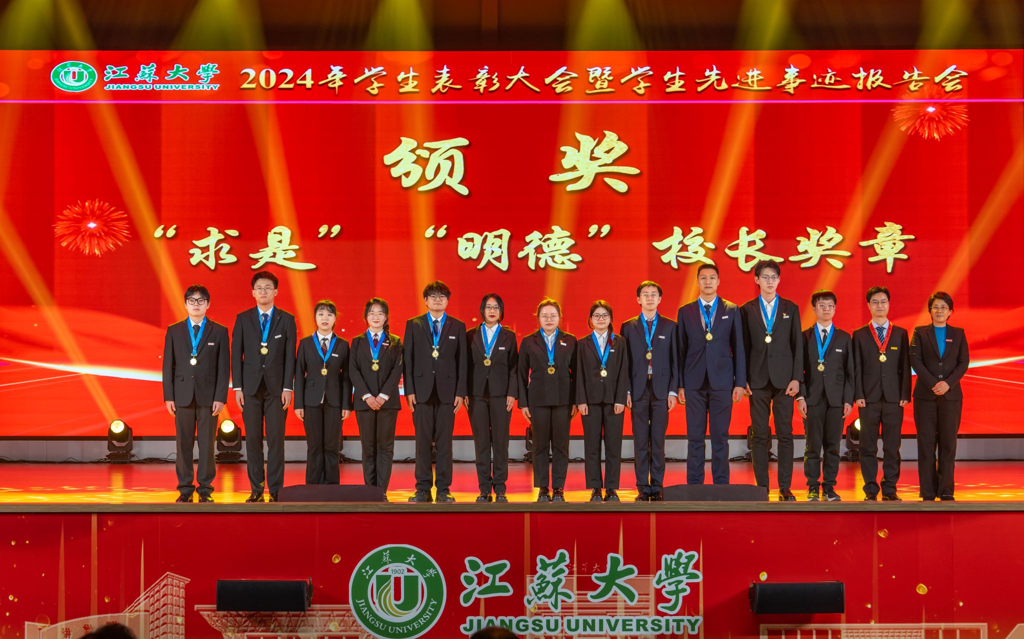 邢卫红向受到表彰的先进集体和优秀个人表示祝贺,向辛勤耕耘在教育教学、管理服务一线的广大教师、辅导员、学业导师及管理服务人员致以崇高敬意和衷心感谢。邢卫红说,学校牢固树立“师生是立校之本”理念,以落实立德树人根本任务为指引,在培养拔尖创新人才上深化改革,面向未来优化学科专业结构,放眼世界延揽高端人才,聚焦国家战略打造高水平科研创新平台,聚力高水平赛事加快推进学科竞赛分类管理,让更多青年学子成才出彩。邢卫红说,江大学子自觉践行“博学、求是、明德”校训精神,主动把“自强厚德,实干求真”江大精神融入日常实践,是有远大理想抱负的青年,是追求卓越、大有作为的青年。邢卫红表示,本次表彰大会既是学生积极进取、奋发向上精神风貌的集中展示,也是激励每一位江大学子奋进新起点、逐梦新征程的鼓劲动员会。她希望同学们致敬榜样、对标榜样、成为榜样,成就更好的自己。