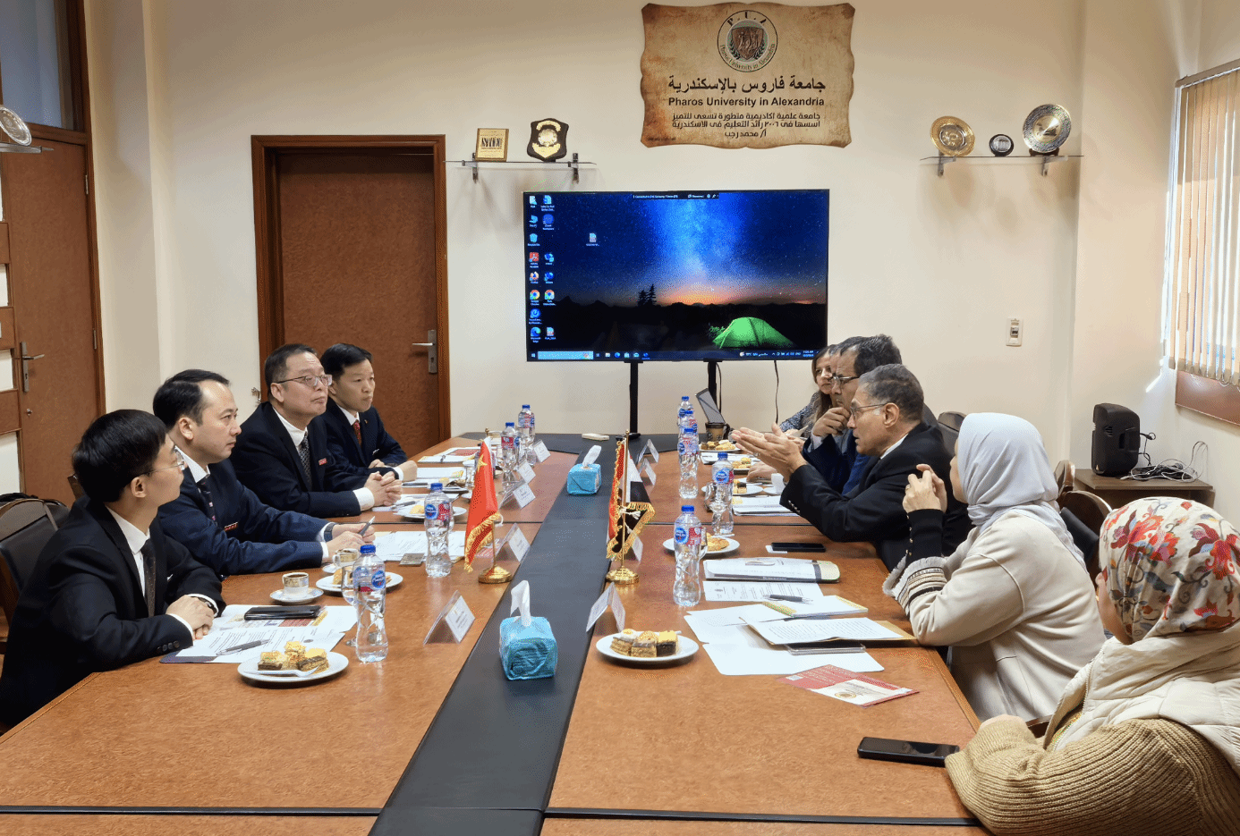 在亚历山大法鲁斯大学访问期间,副校长Mohamed Gaber Abou Ali教授对代表团表示热烈欢迎并表达了建立合作关系的强烈意愿。双方就两校在科研合作、人才联合培养、学生短期交流等方面的合作模式和可行性进行了充分交流。代表团还考察了学校硬件设施及生科院、工程学院实验室,了解联合开展科研工作的合作基础。