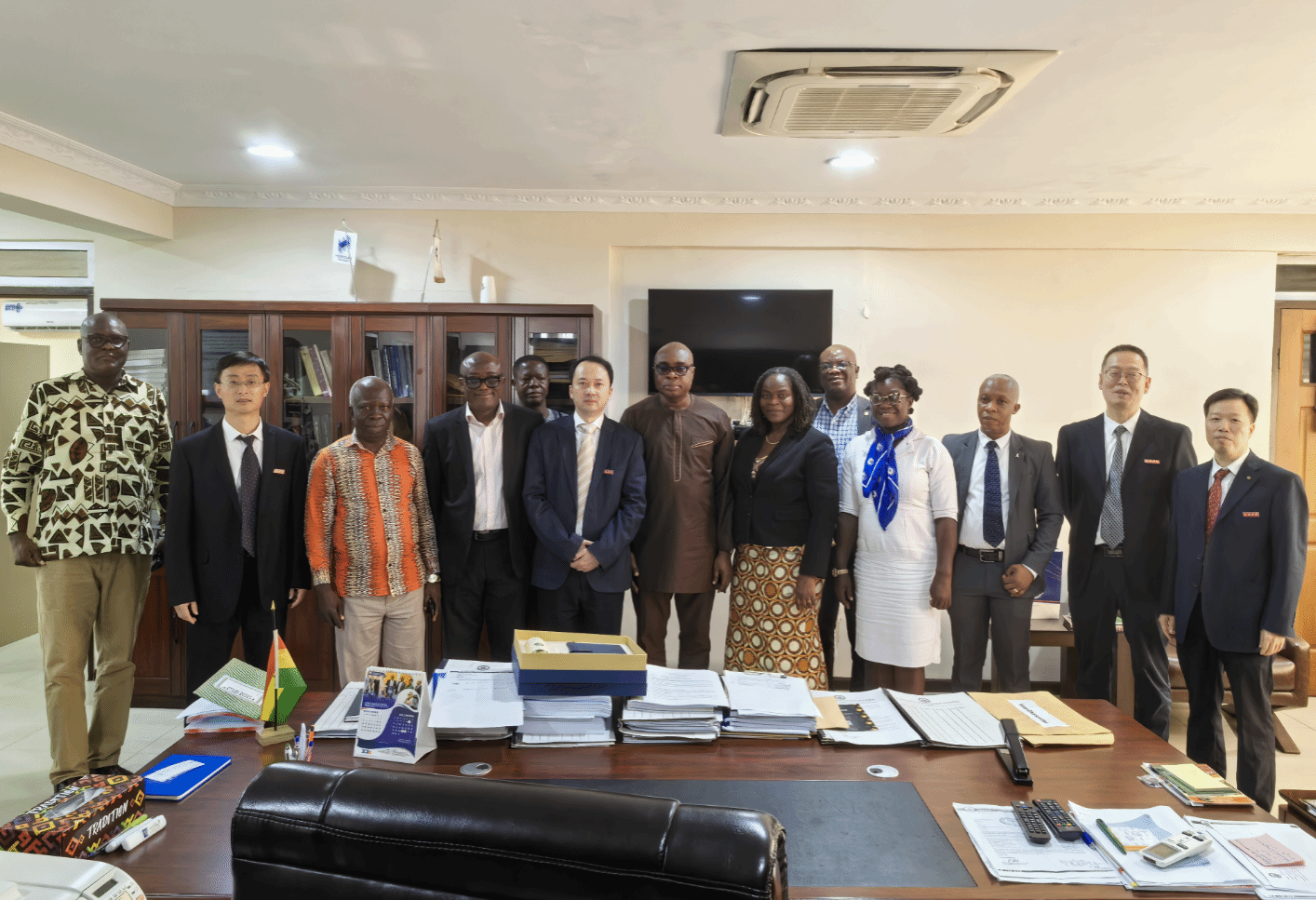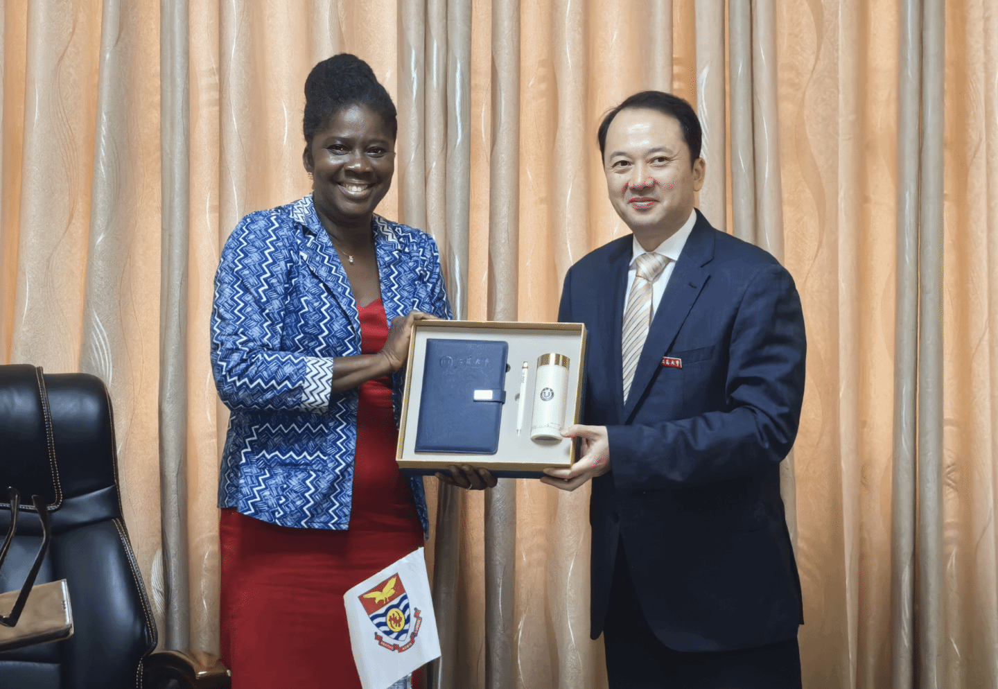 在加纳海岸角大学,副校长Rosemond Boohene女士和国际处、农业机械系等单位代表参加了会见。双方回顾了两校长期合作基础和当前成果,进一步探讨了长期合作发展方向,并达成持续推进广泛合作的意向。