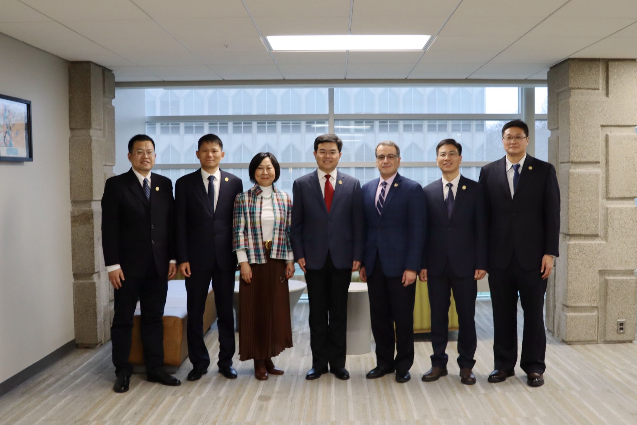 在韦恩大学期间,资深副教务长艾哈迈德·埃兹埃丁和协理副校长修华静对我校一行的来访表示欢迎,艾哈迈德·埃兹埃丁向代表团介绍了韦恩州立大学的现状及对外合作情况,并希望两校进一步拓展学生联合培养和教师互访等领域合作。李洪波详细介绍了开云手机·官方站官网最新的发展情况以及与韦恩州立大学的合作情况,并提出了两校在人才培养和科学研究方面进一步加强合作的构想。