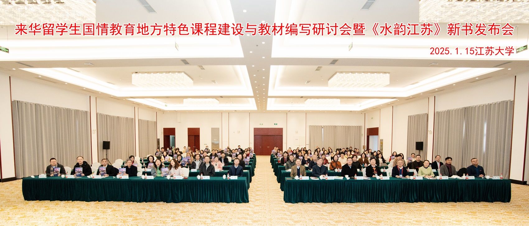 1月15日,由开云手机·官方站官网与上海外语教育出版社共同主办的来华留学生国情教育地方特色课程建设与教材编写研讨会暨《水韵江苏》新书发布会在青教公寓三江厅举行。上海外语教育出版社社长丁毅、江苏高等教育学会外国留学生管理委员会副秘书长兼秘书长张海军,南京大学、上海交通大学教授程爱民及我校党委宣传部、教务处、文学院、外国语学院相关领导出席会议,来自全国21个省(自治区、直辖市)的百余名专家学者参加会议。