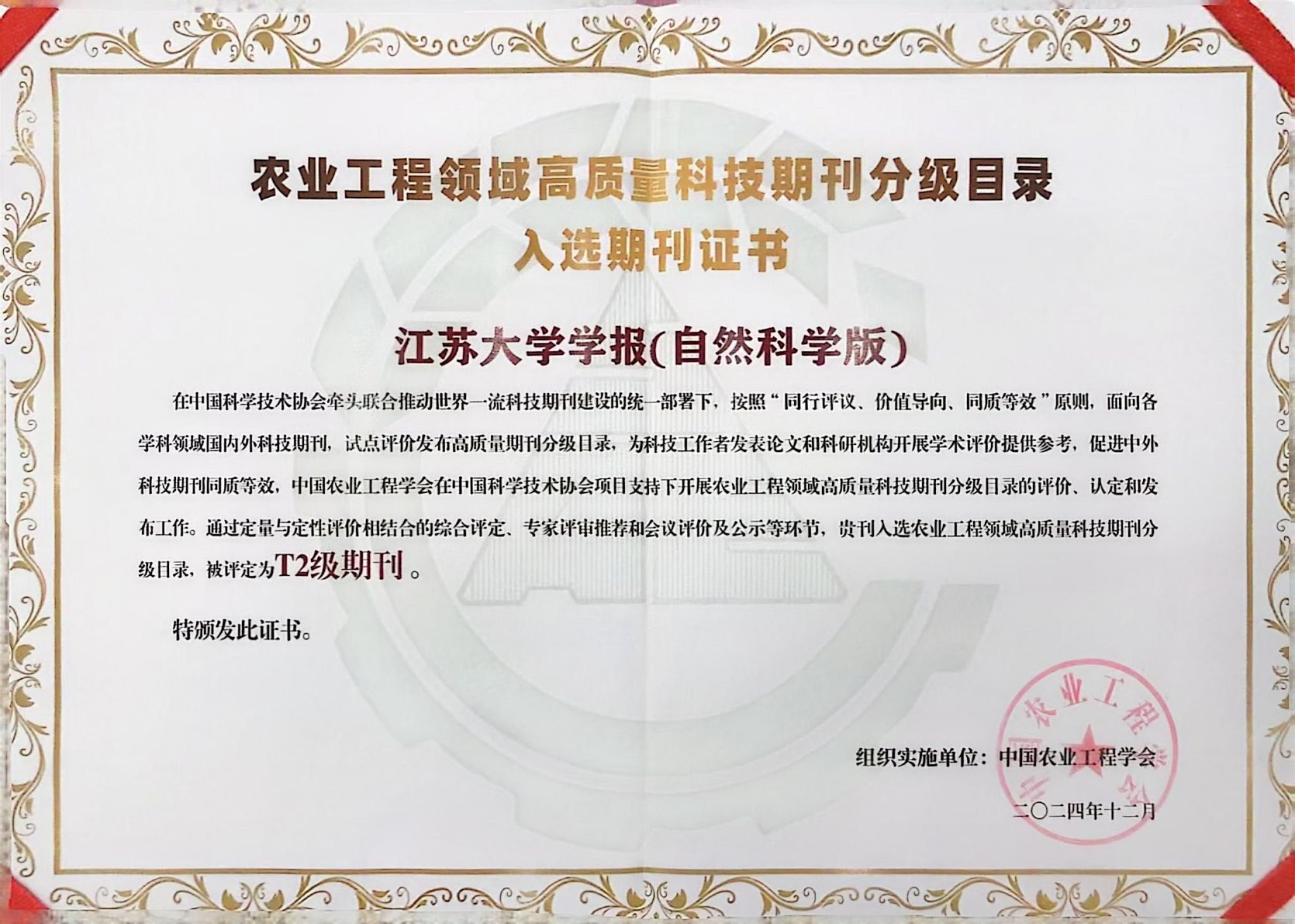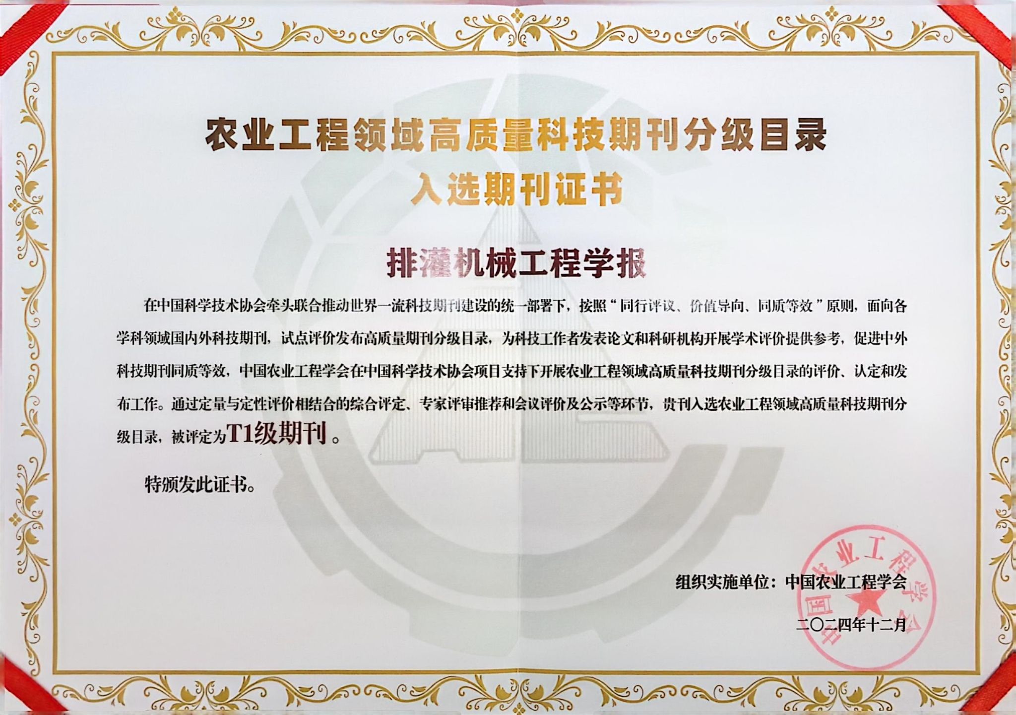 近日,中国农业工程学会在中国农业科学院国家农业图书馆召开发布会,正式发布其编制的“农业工程领域高质量科技期刊分级目录”,我校主办的《排灌机械工程学报》《开云手机·官方站官网学报(自然科学版)》双双入选,分别位列T1级和T2级。