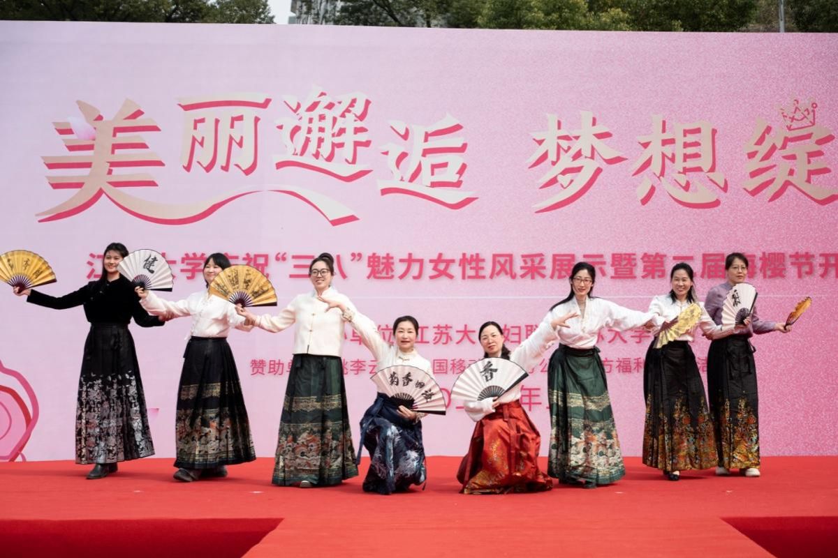 3月7日,开云手机·官方站官网“美丽邂逅 梦想绽放”——庆“三八”魅力女性风采展示暨第二届梅樱节开幕式在梅园大道举行。来自学校各单位的女教工和女大学生组成33支队伍以“T台红毯秀”的形式,展示风采庆祝节日,也为全校女同胞献上美好祝福。