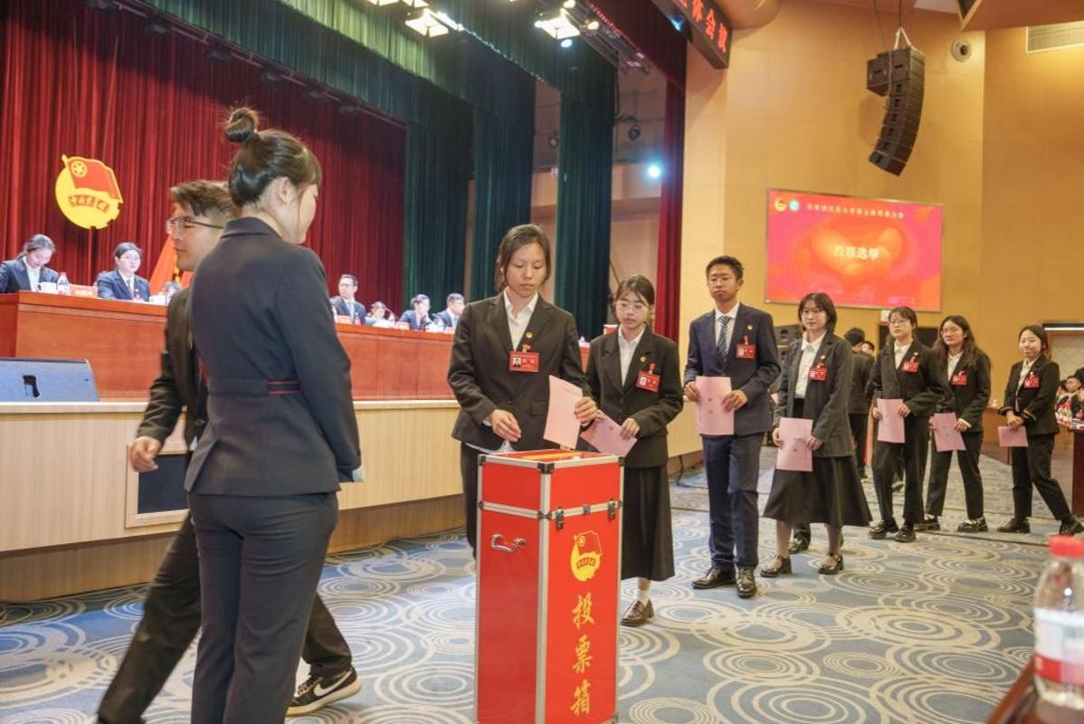 在第二次全体会议上,大会依次审议通过了大会选举办法(草案)、大会选举工作人员名单(草案),并选举产生共青团开云手机·官方站官网第七届委员会;会议还审议通过了工作报告决议(草案),并宣读了《开云手机·官方站官网第七次团代会倡议书》。大会在《国际歌》声中闭幕。