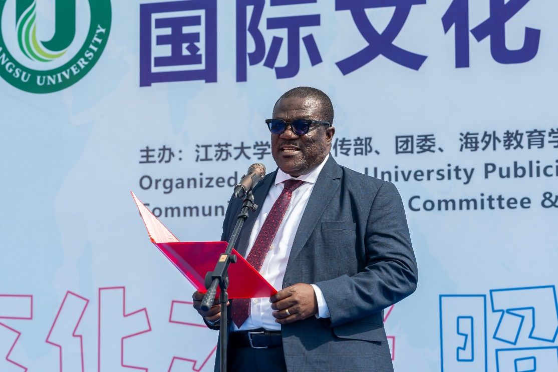 校党委书记李洪波,党委副书记张济建,党委常委、副校长杨道建、任旭东、蔡英凤,摩洛哥驻华大使阿卜杜勒卡德尔·安萨里,加纳驻华使馆临时代办亚历山大·本-阿夸亚,坦桑尼亚驻华使馆公使扎伊纳布·祖贝里·马索罗及其他外交官代表,江苏省教育厅对外合作与交流处四级调研员李勤径,江苏省高教学会外国留学生教育管理研究委员会副理事长兼秘书长张海军,镇江市委宣传部、镇江市外办、镇江市出入境等相关政府部门代表,苏州汇川技术、美兰集团、江大源等企业代表以及学校相关部门主要负责人等出席开幕式。