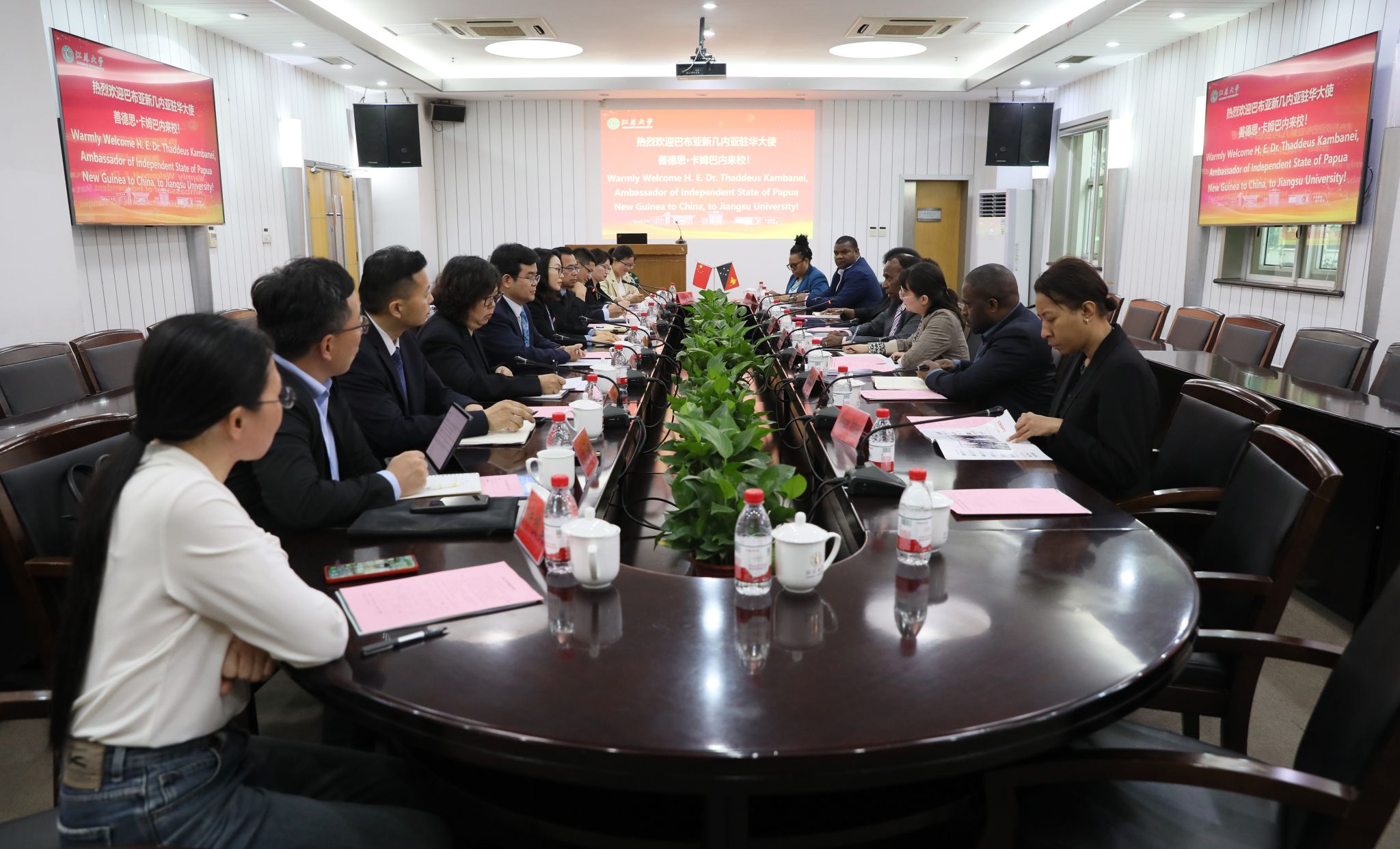 5月16日,太平洋岛国大使团轮值主席、巴布亚新几内亚(巴新)驻华大使善德思·卡姆巴内一行来访我校。校党委书记李洪波,党委常委、副校长蔡英凤会见了来宾,国际合作与交流处、机械工程学院、数学科学学院、和物理与电子工程学院相关负责人参加会见。