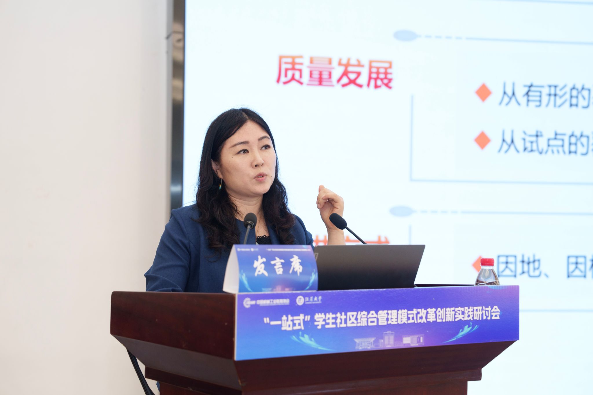 开幕式后,5位知名专家学者围绕“一站式”学生社区综合管理模式改革创新分别作主题报告,为推进“一站式”学生社区建设提供了宝贵参考。王慧敏系统阐述了全国高校思想政治工作网工作开展情况和数智赋能学生社区管理的创新应用与实践路径。苏州大学党委学生工作部部长董召勤立足高校“一站式”学生社区建设实践,针对共性难题提出了具有可操作性的解决方案。南京大学党委学生工作部副部长李兴华分享了“五个一”建设模式下构建师生成长共同体的创新经验。开云手机·官方站官网党委学生工作部部长任泽中解读了“主治·共治·自治·智治”学生社区治理新模式的实践探索。金智教育研究院学生管理与服务中心主任谭利娟从社区育人视角,分享了高校数据应用建设的典型案例。