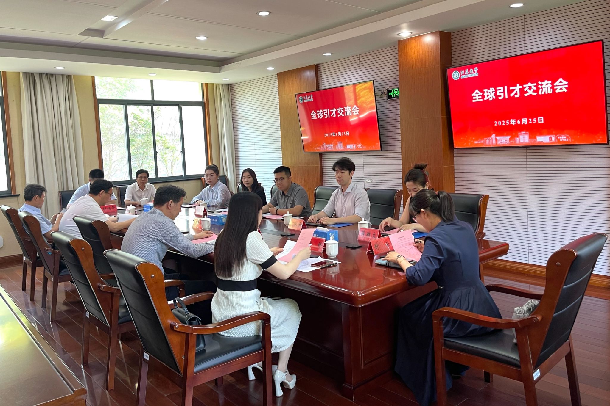 6月25日,来自荷兰、澳大利亚、英国、俄罗斯等国家的中国学联主席团来校交流。校党委常委、副校长王景全,镇江市委组织部副部长(正处职)郭鑫,镇江市委统战部副部长於光辉接待来访一行。期间,学校举行了全球引才交流会,党委人才工作部部长、人才工作办公室主任黄婷主持会议。