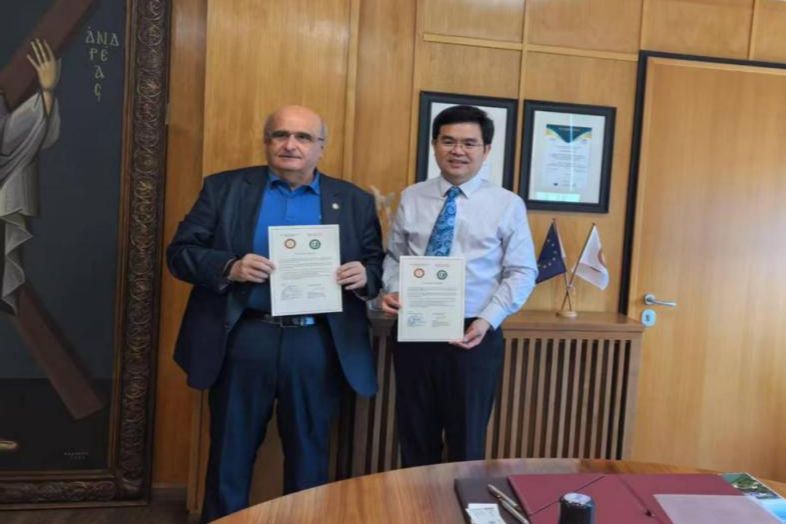 6月23日,代表团首站访问希腊帕特雷大学(University of Patras),与校长克里斯托斯•布拉斯(Christos Bouras)、学术与国际事务副校长迪奥尼修斯•曼察维诺斯(Dionissios Mantzavinos)举行会谈。双方正式签署合作意向书,致力于创建“一带一路”智慧农业技术与装备国际联合实验室,同步启动学生互换交流与境外办学项目,标志着中希高校合作迈入深度融合新阶段。当日,代表团还拜访了历史悠久的希腊雅典科学院,美国国家工程院院士、希腊科学院院士、希腊雅典国立技术大学化学工程教授Doros Nicolas Theodorou等热情接待。双方就开拓科技合作渠道、促进开云手机·官方站官网与希腊雅典科学院开展技术交流、高层次人才引进与输出达成共识。