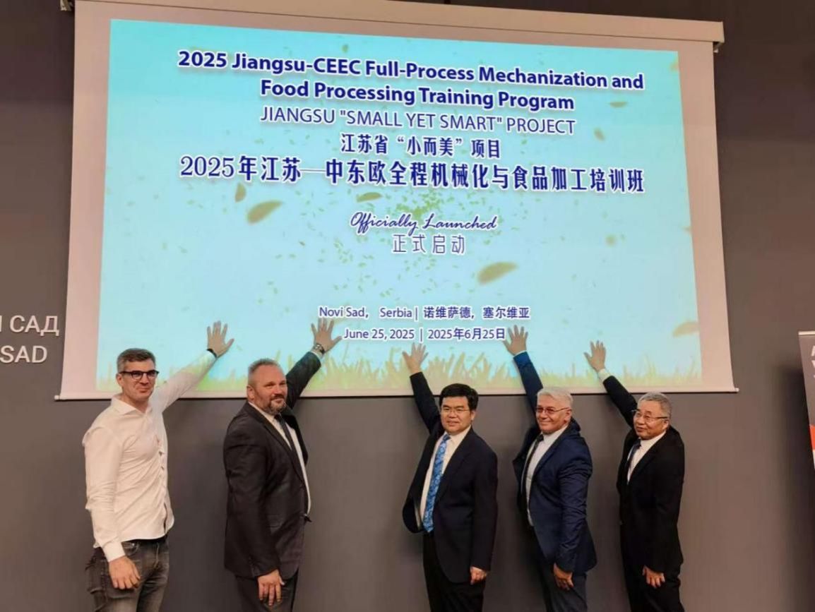 6月26日,代表团与东欧高校联合举办了中国(江苏)—波黑(中东欧)智慧农业技术与装备“一带一路”联合实验室模块化研究室建设研讨会,与中东欧各国高校、院所及企业开展技术发布与对接。李洪波、波黑东萨拉热窝大学校长Milan Kulic、塞尔维亚诺维萨德大学校长Dejan Madić、塞尔维亚尼什大学校长Jovan Stepanović、波黑巴尼亚卢卡大学副校长Milica Balaban以及农业装备国际(产能)合作联盟理事单位江苏联博精密科技股份有限公司总经理萧庆鹏、镇江刘恒记食品有限公司总经理刘潮军,共同签署了“中国—中东欧智慧农业与农食产品加工模块化研究室”共建协议,标志着区域农业科技合作进入新阶段。当日,代表团还拜访了贝尔格莱德大学,促进江苏相关实体与该校的科技交流。