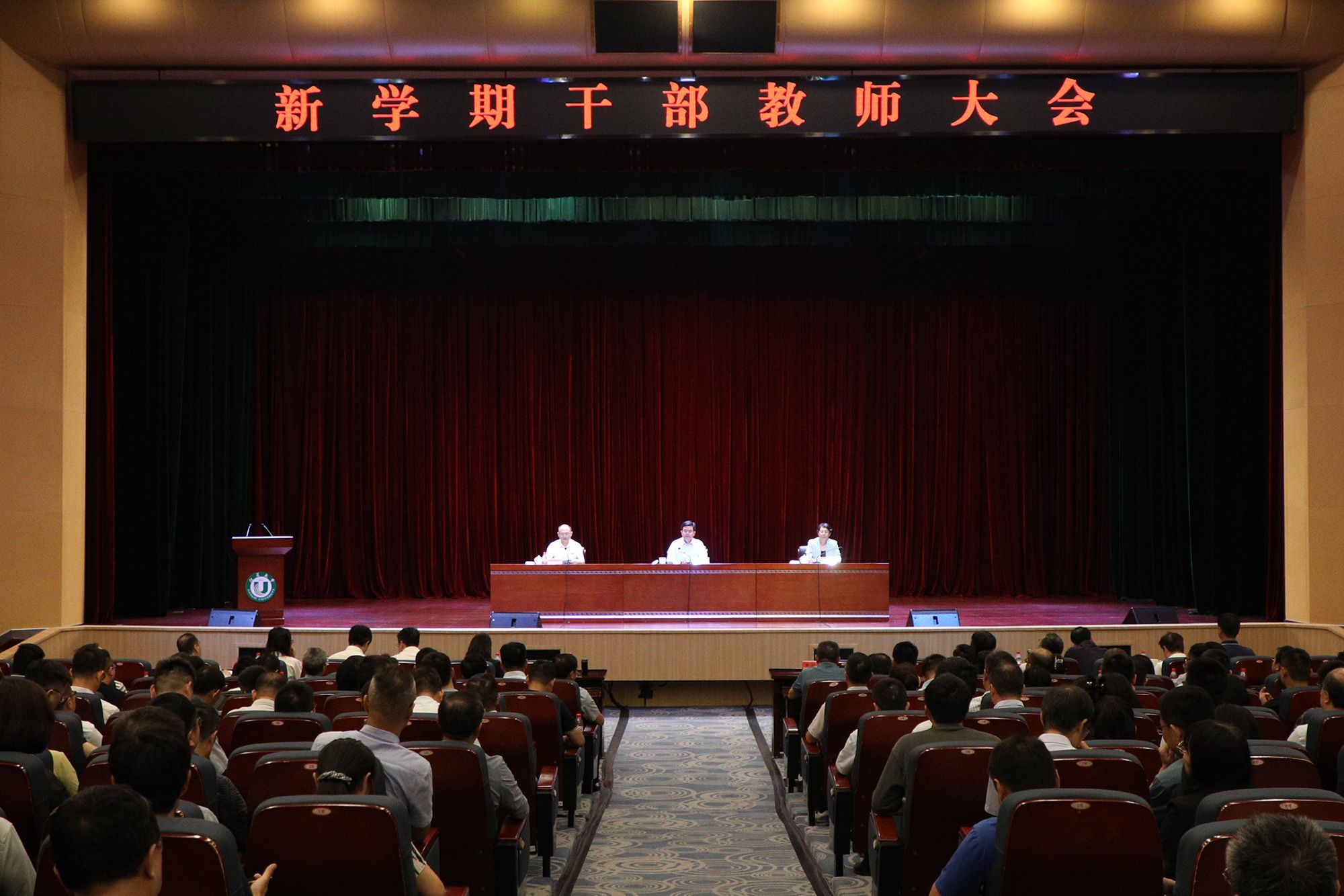8月31日,学校在小礼堂召开新学期干部教师大会,总结上半年工作,对下半年学校党政主要工作进行部署,推动全年目标任务落地落实。