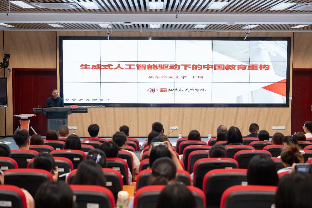 论坛主旨报告环节,华东师范大学教育高等研究院院长丁钢、浙江大学科举学与考试研究中心主任刘海峰、南京师范大学劳动教育研究院院长顾建军、华中师范大学研究生院院长雷万鹏分别作题为《生成式人工智能驱动下的中国教育重构》《教育强国建设与高考改革》《新时代劳动教育的意义建构与实践品格》《集团化办学效果评价与反思》的专题报告。