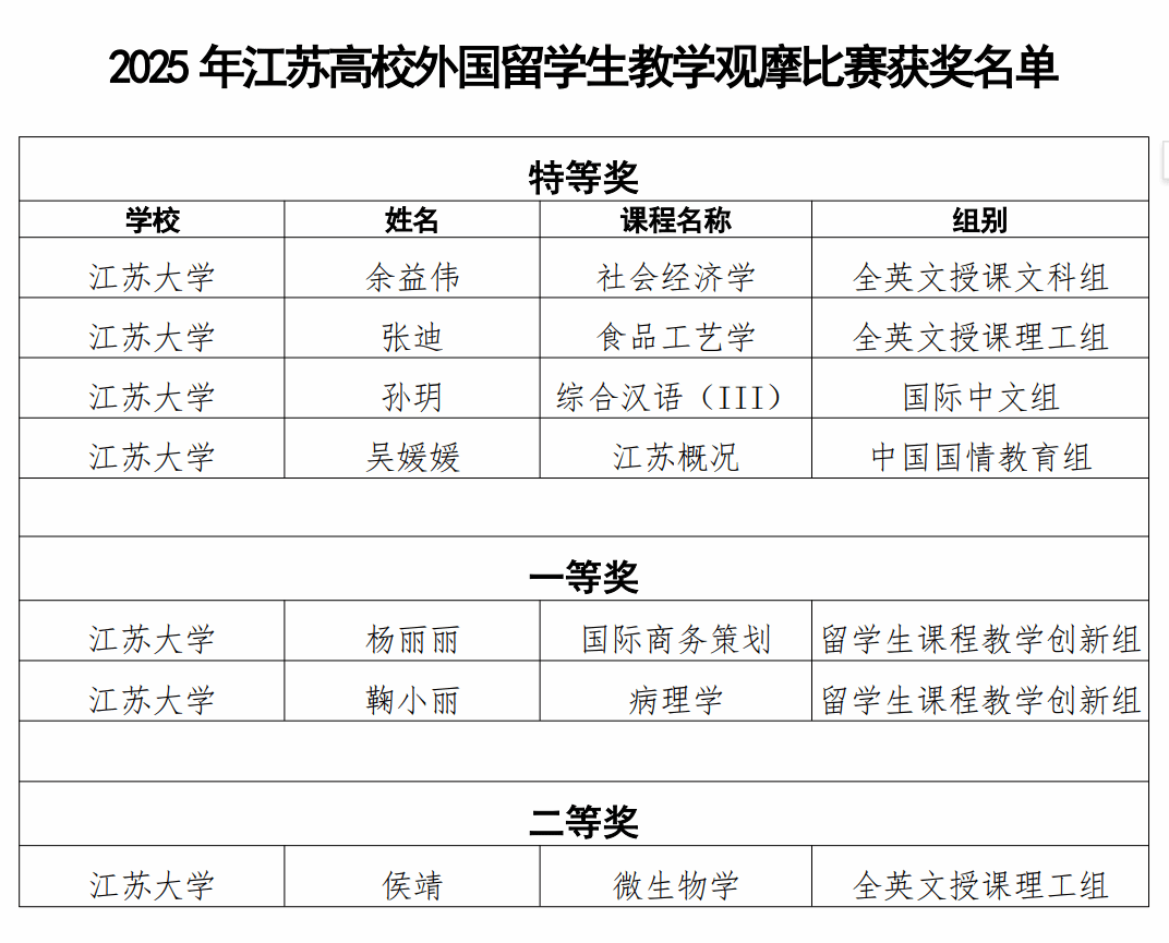 11月28日至29日,江苏高校外国留学生教学观摩比赛(复赛)在南京邮电大学举办。我校获特等奖四项、一等奖两项、二等奖一项,学校获优秀组织奖,是全省参赛高校中获特等奖数量最多的院校之一。