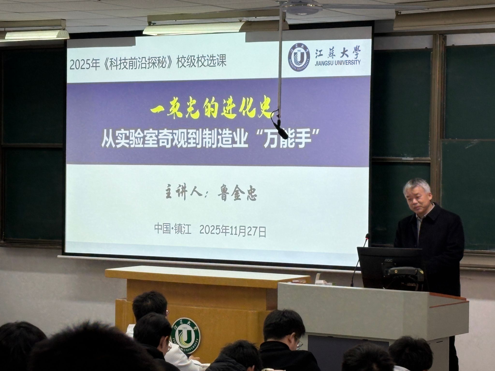 近日,本学期首次开设的校公选课“科技前沿探秘”结课。课程面向全体本科生开放,邢卫红、袁寿其、邹小波、王景全、蔡英凤、梅强等12位相关领域专家担任主讲嘉宾,课程内容涵盖多个科技前沿领域,采用“现场讲授+线上直播”双线融合教学模式,为学生打造跨学科、高规格的科技盛宴。