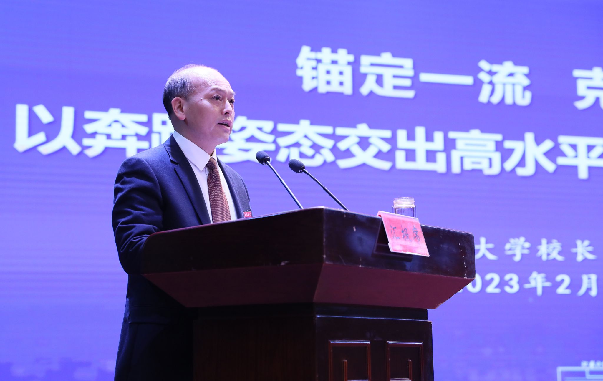 校长颜晓红作行政领导班子述职报告。报告从答好高质量发展“关键题”、办学标志性成果实现重大突破,答好特色化发展“加分题”、办学社会影响显著提升,答好内涵式发展“基础题”、办学综合实力显著增强,答好安全发展“必答题”、创建平安和谐文明校园取得显著成效等方面介绍了学校各项事业取得的显著成就。结合学校发展实际,他分析了当前面临的新挑战、新机遇,强调学校将深入学习贯彻党的二十大精神,牢记嘱托、勇担使命,为早日建成“在国内外具有重要影响和鲜明特色的高水平大学”而团结奋斗,努力为全面推进中国式现代化江苏新实践作出新的更大贡献。