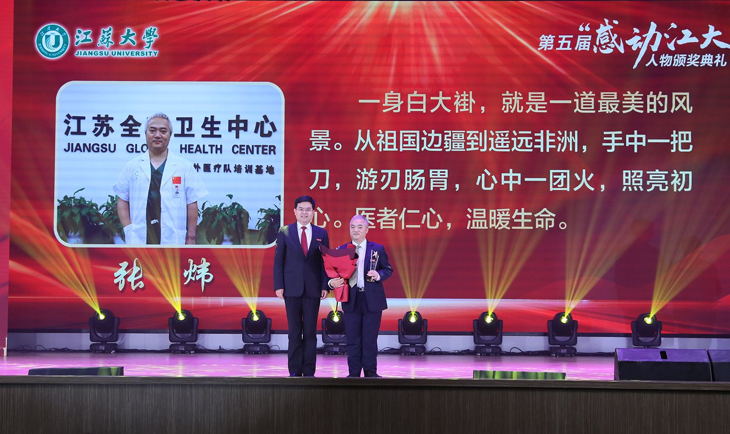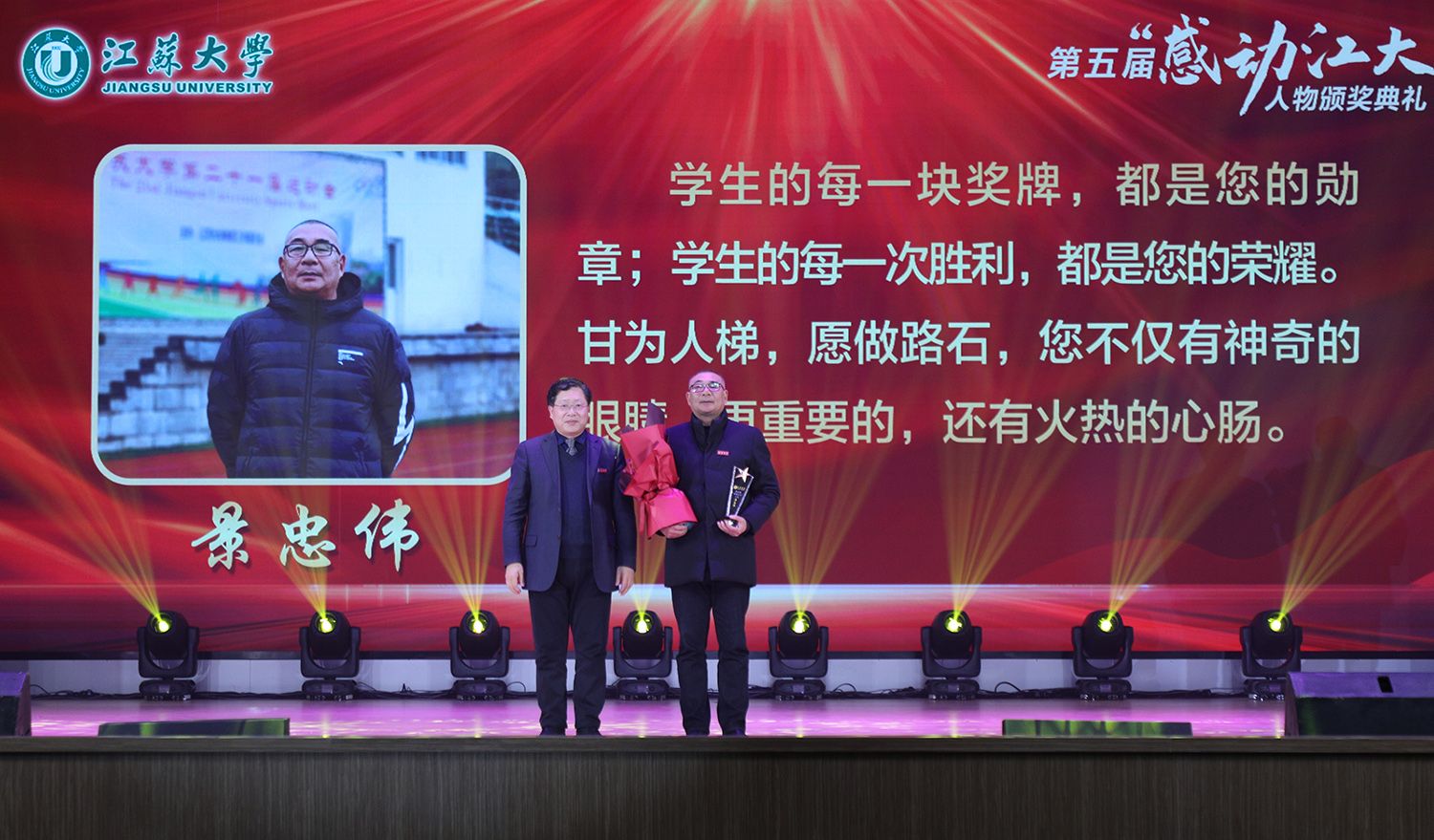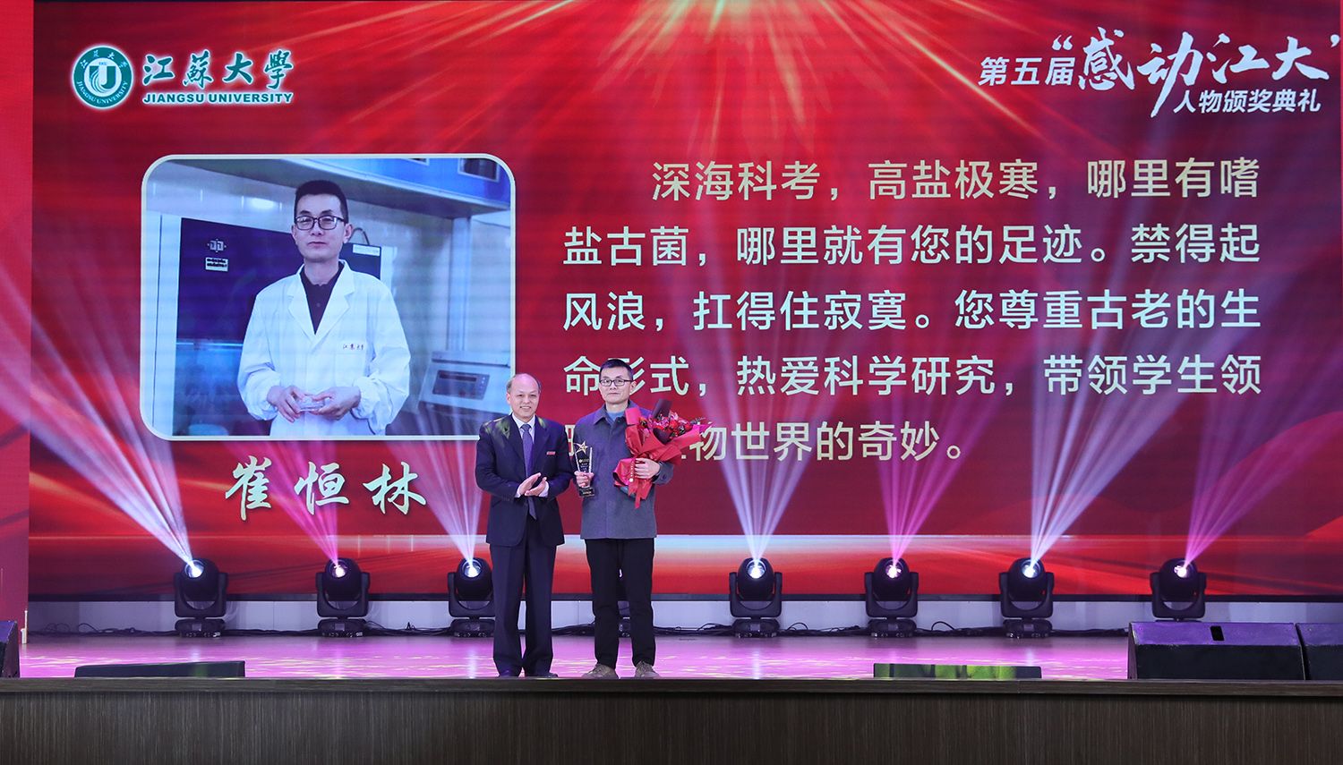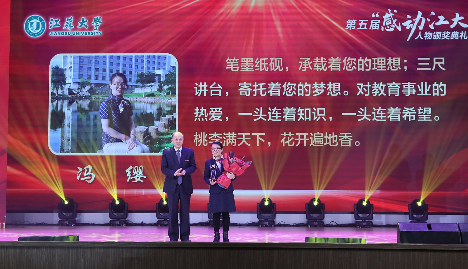 典礼现场,与会领导还为荣获第五届“感动江大”人物提名奖的医学院教师周志强、药学院教师马亲、数学科学学院中外合作教学管理团队、后勤管理处品质后勤团队、财经学院“益路髓行”团队颁奖。