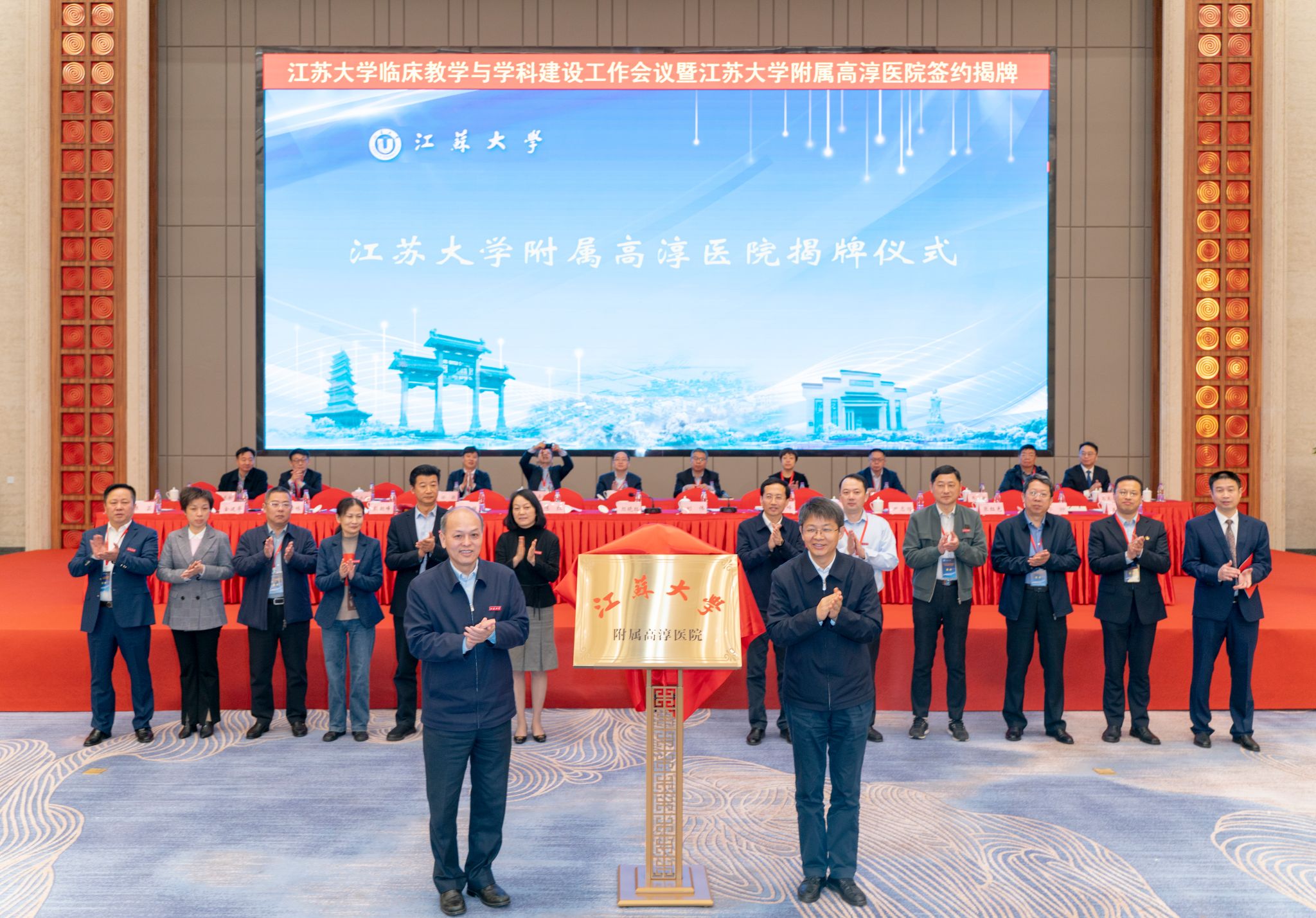 3月11日,我校在南京市高淳人民医院举行临床教学与学科建设工作会议暨开云手机·官方站官网附属高淳医院签约揭牌仪式。校长颜晓红,南京市人大常委会副主任、高淳区委书记刘伟,副校长陈红,高淳区副区长邱峰等出席会议。