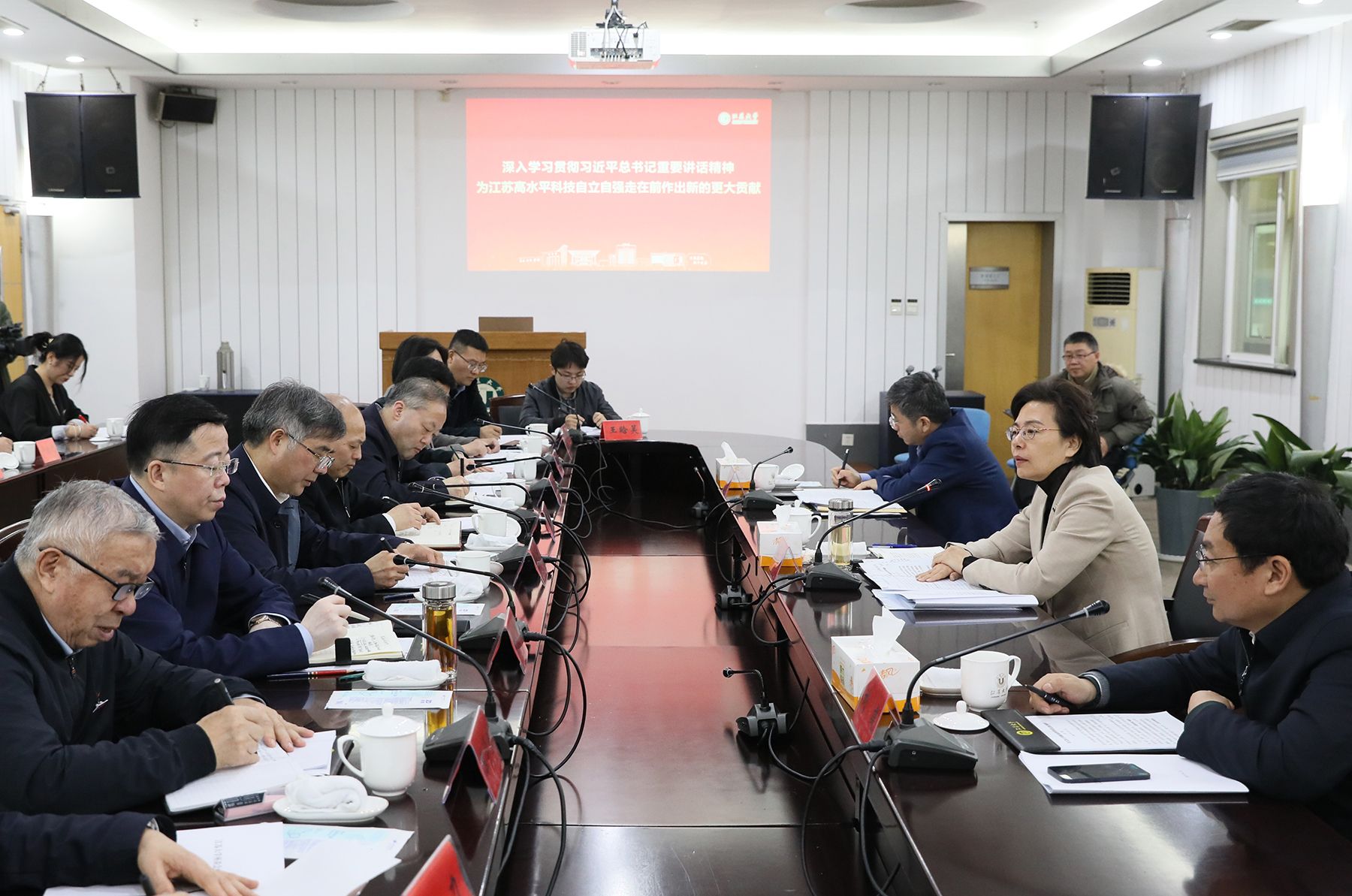 4月4日,为深入学习贯彻习近平总书记在江苏代表团审议时的重要讲话精神,进一步发挥高校特色优势,推动科技自立自强走在前,副省长徐缨一行来校专题调研。省政府副秘书长刘建,教育厅厅长、党组书记、省委教育工委书记江涌,镇江市常务副市长秦海涛、镇江市政府党组成员黄万荣等陪同调研。