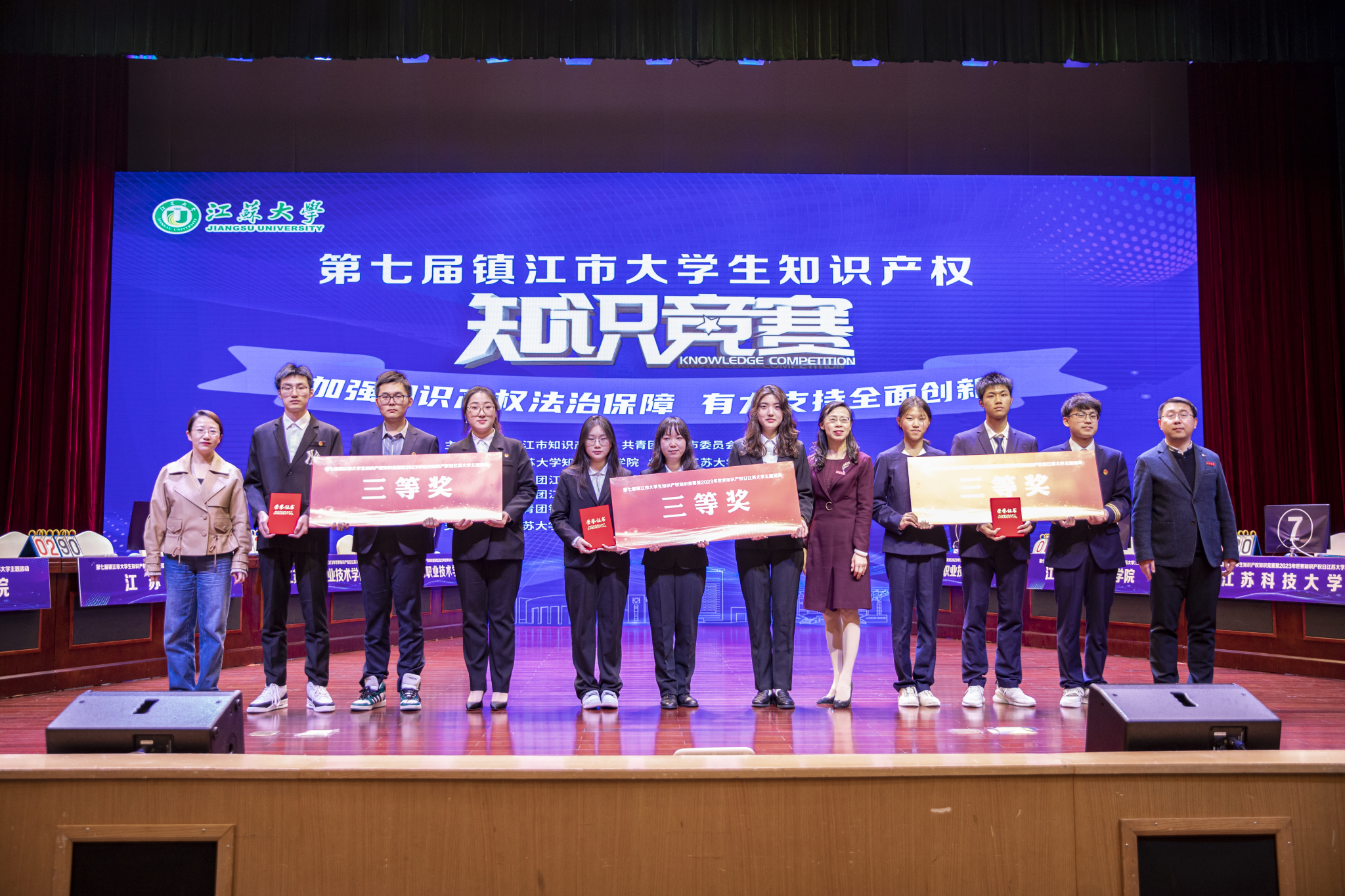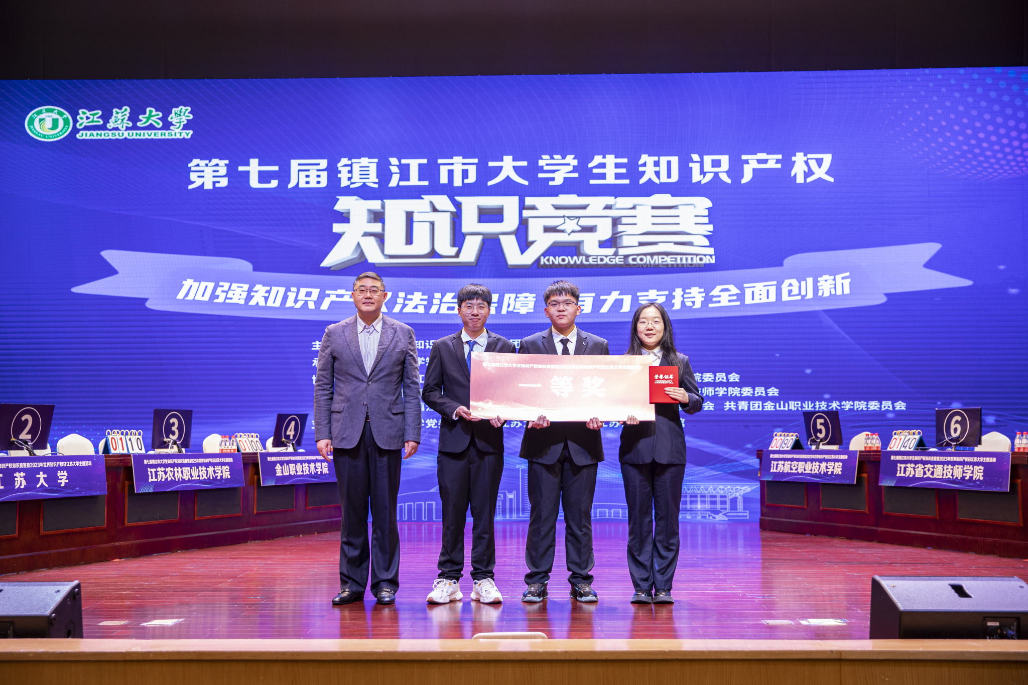 第七届镇江市大学生知识产权知识竞赛上,来自开云手机·官方站官网、江苏科技大学、镇江市高等专科学校、江苏农林职业技术学院、江苏航空职业技术学院、江苏省交通技师学院、镇江技师学院、金山职业技术学院等八所高校代表队激烈角逐比拼,最终开云手机·官方站官网获一等奖,镇江高等专科学校、江苏省镇江技师学院获二等奖,江苏省交通技师学院、江苏科技大学、江苏农业职业技术学院获三等奖。(知识产权学院)