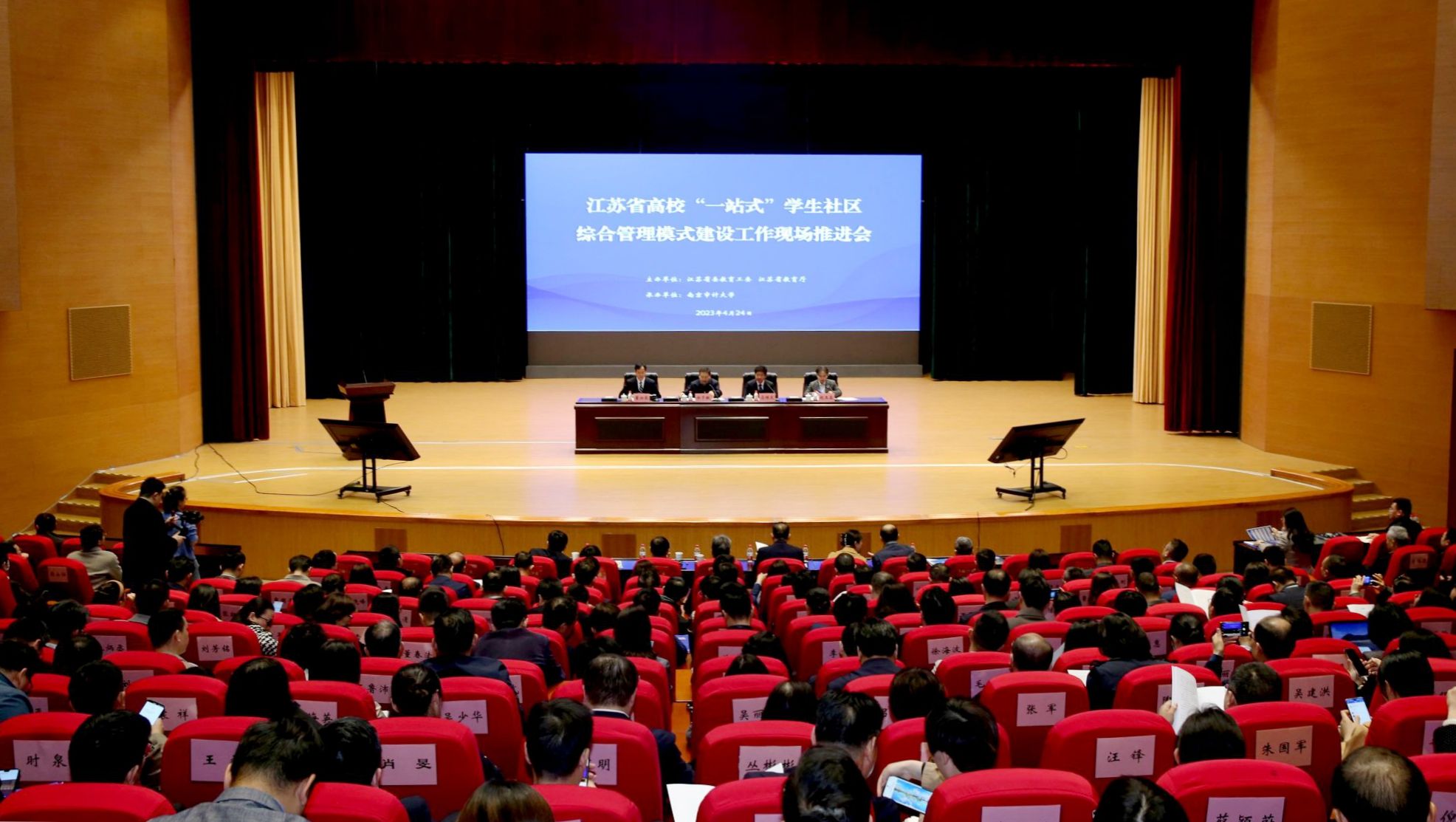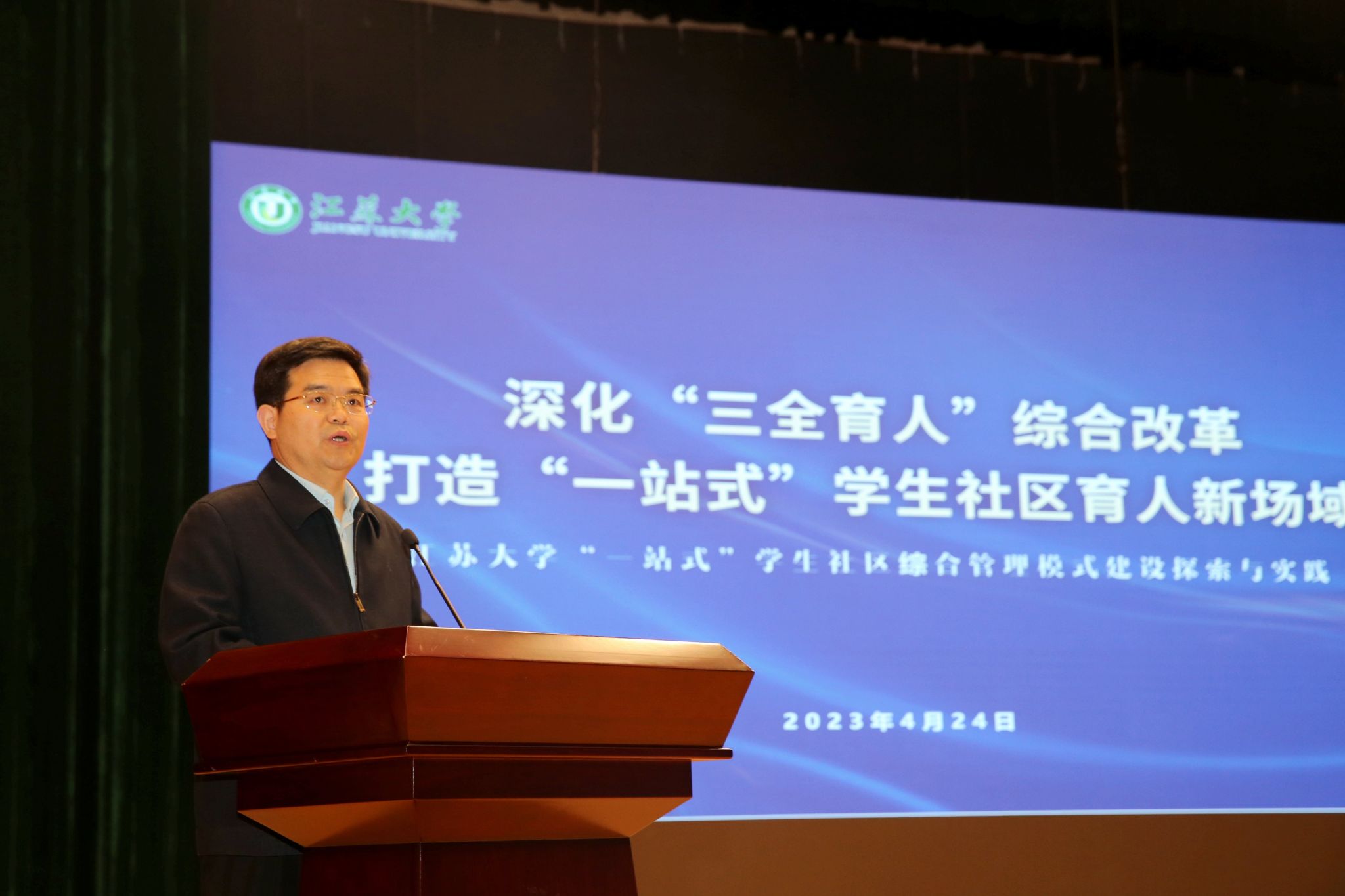4月24日,江苏省高校“一站式”学生社区综合管理模式建设工作推进会在南京审计大学召开,省委教育工委副书记、省教育厅党组成员徐子敏出席会议并讲话。我校党委副书记李洪波代表学校参会并作会议交流发言。