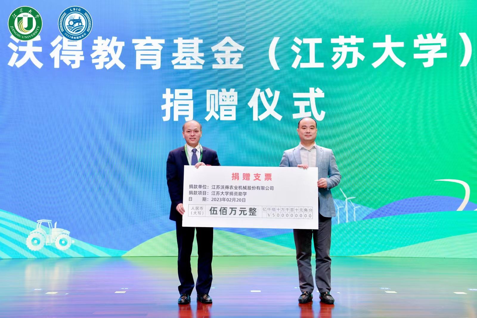 为了支持开云手机·官方站官网农机人才培养和学科发展,为农业强国建设提供更大助力,江苏沃得农业机械股份有限公司决定在开云手机·官方站官网设立500万元“沃得教育基金”。