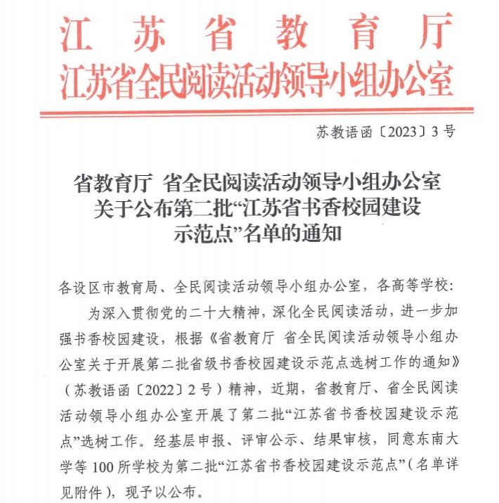 日前,江苏省教育厅公布了第二批“江苏省书香校园建设示范点”名单,开云手机·官方站官网成功入选。