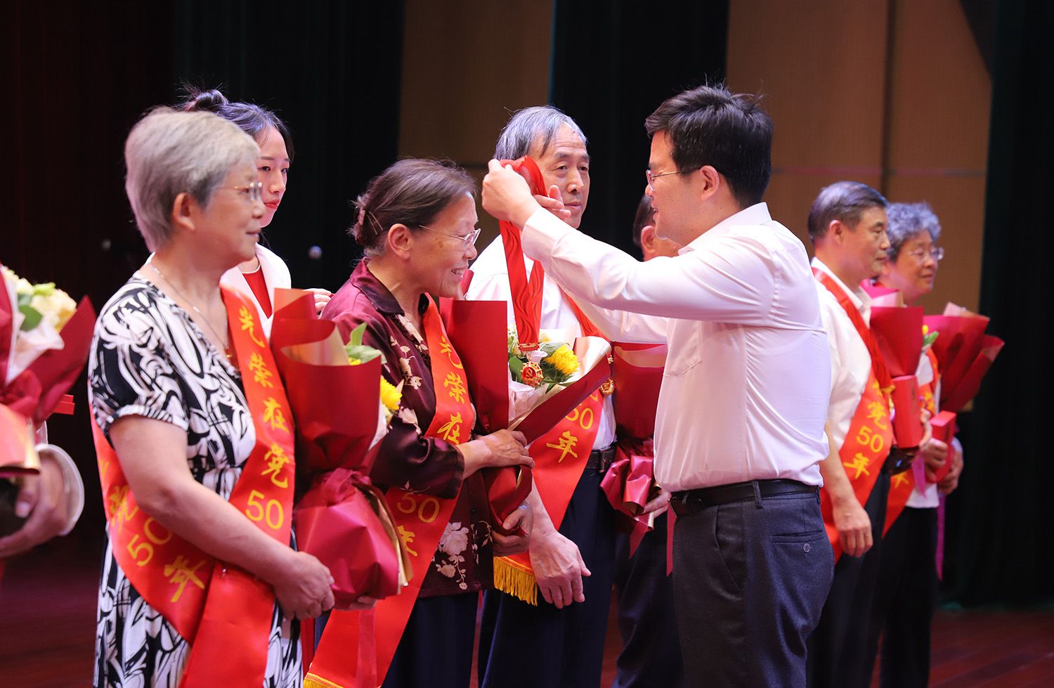 6月29日,学校举行开云手机·官方站官网庆祝建党102周年“七一”表彰大会暨“光荣在党50年”纪念章颁发仪式,向党龄达到50年以上的老党员们传递党的关心关爱,对两年来涌现出的优秀共产党员、优秀党务工作者、先进基层党组织予以表彰。