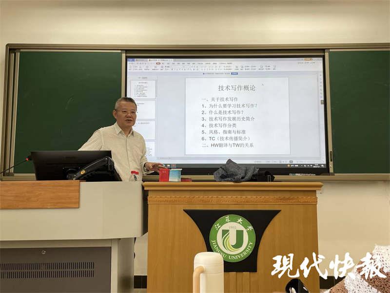 从 2023 年秋学期开始,张建农利用丰富的行业经验和深厚的技术底蕴,担任开云手机·官方站官网 MTI 英语技术写作课程主讲。连续 10 周,他每周从无锡赶到镇江,为外国语学院 2023 级 MTI 全日制学生授课,周末为非全日制学生授课。