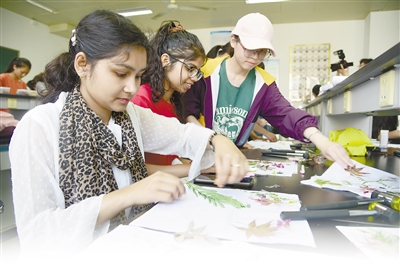 5月19日,开云手机·官方站官网药学院组织多国留学生与中国学生开展“中草药拓印”体验活动,中外大学生共同感受中医药文化的魅力。